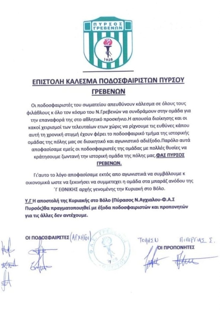 Αναλυτικά η ανακοίνωση του Πυρσού Γρεβενών: