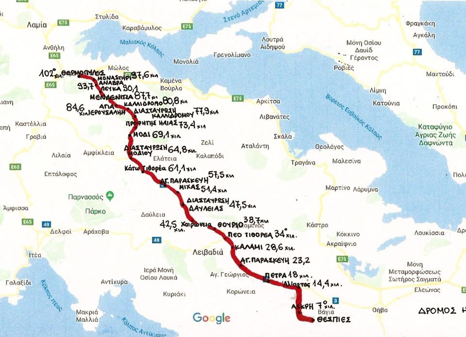 Η εκκίνηση δίνεται στο Μνημείο του Δημοφιλου στις Θεσπιές και μετά ακολουθεί μια συναρπαστική διαδρομή που καταλήγει στο Μνημείο των Ηρώων στις Θερμοπύλες.