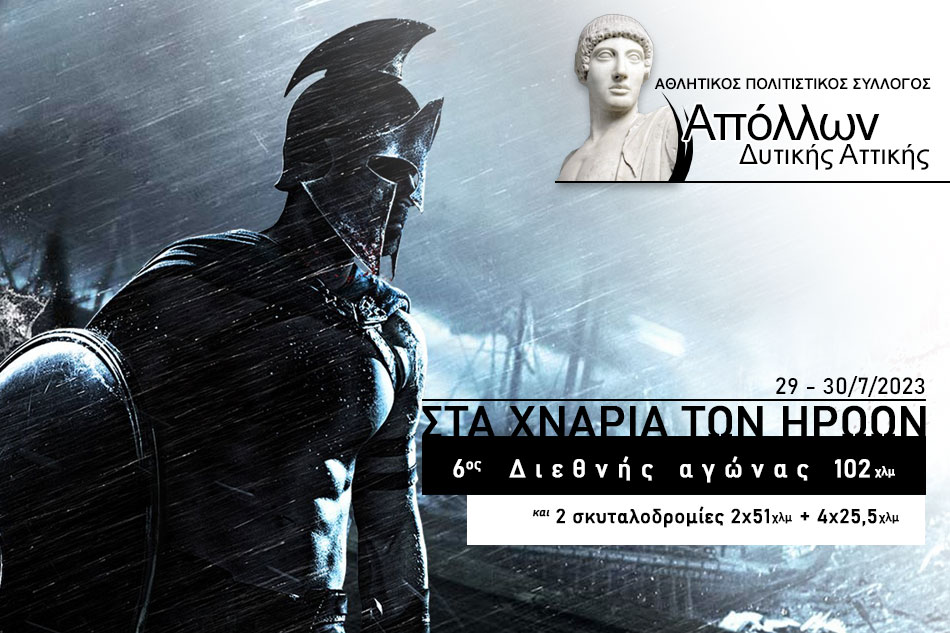 Ο Αθλητικός Πολιτιστικός Σύλλογος “Απόλλων” Δυτικής Αττικής διοργανώνει και φέτος τον αγώνα δρόμου “Στα χνάρια των ηρώων”, των αγώνα υπεραπόστασης με αφετηρία το μνημείο του Δημόφιλου στις Θερμοπύλες και τερματισμό το μνημείο των ηρώων (Λεωνίδα) στις Θερμοπύλες, 102 χιλιομέτρων!