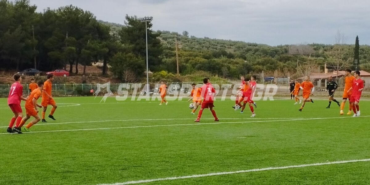 Στο παιχνίδι των ομάδων κάτω των 14 ετών (παίδων) που πάντα προηγείται και το οποίο ήταν βαθμολογικά “αδιάφορο”, ουσιαστικά, οι γηπεδούχοι, οι οποίοι είχαν εξασφαλίσει την 1η θέση και την πρόκριση στην Β’ φάση από την προηγούμενη αγωνιστική, επικράτησαν με 2-0 με το γκολ του Παναγιώτη Βαρσάμη μόλις στο 2ο λεπτό και του Βαγγέλη Βυλλιώτη στο 57′.