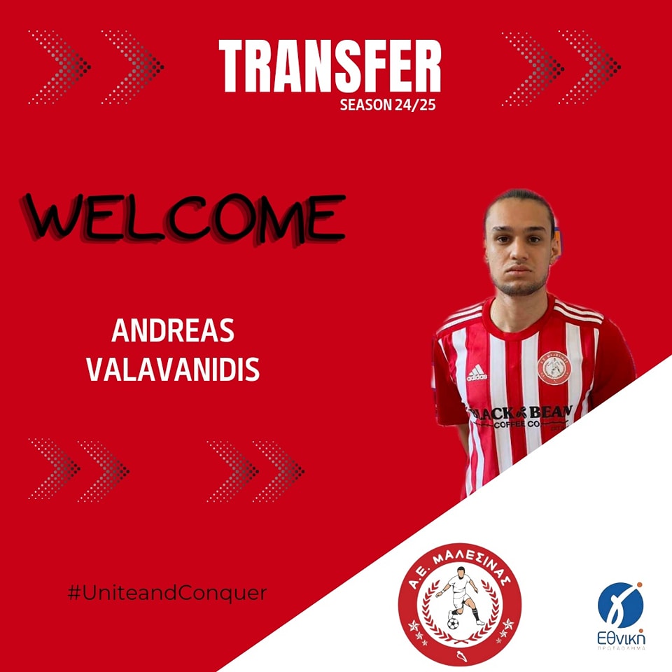 Η ΑΕ Μαλεσίνας ανακοινώνει την έναρξη της συνεργασίας της με τον ποδοσφαιριστή Ανδρέα Βαλαβανίδη για την σεζόν 24/25.