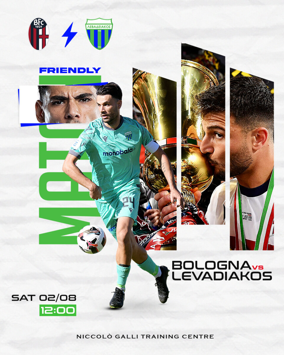 Η ΠΑΕ Λεβαδειακός ανακοινώνει τη διεξαγωγή φιλικού αγώνα της ομάδας μας με την Μπολόνια στις 2 Αυγούστου.