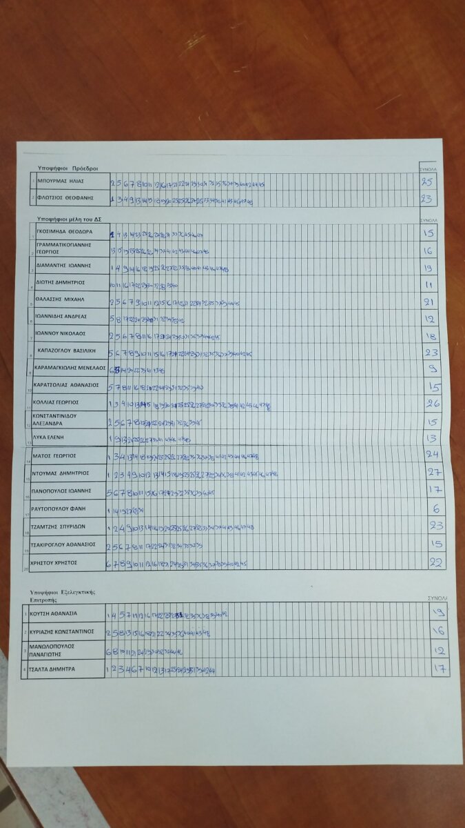 Μετά από την ολοκλήρωσή της και βάσει της σταυροδοσίας, στο 11μελές δ.σ. εκλέχθηκαν και οι: Δημήτρης Ντούμας, Γιώργος Κόλλιας, Γιώργος Μάτος, Βασιλική Καπάζογλου, Σπύρος Τζαμτζής, Χρήστος Χρήστου, Μιχάλης Θαλάσσης, Γιάννης Διαμαντής και Νίκος Ιωάννου.