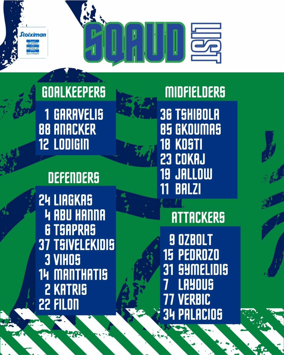 Στον πάγκο κράτησε τους: Νικοπολίδης, Ζέρσον Σόουζα, Παντελίδης, Πέρεθ, Μάναλης, Πατήρας, Εσκιβέλ, Ποκόρνι, Κωνσταντακόπουλος, Μουσιόλικ, Σμπώκος.