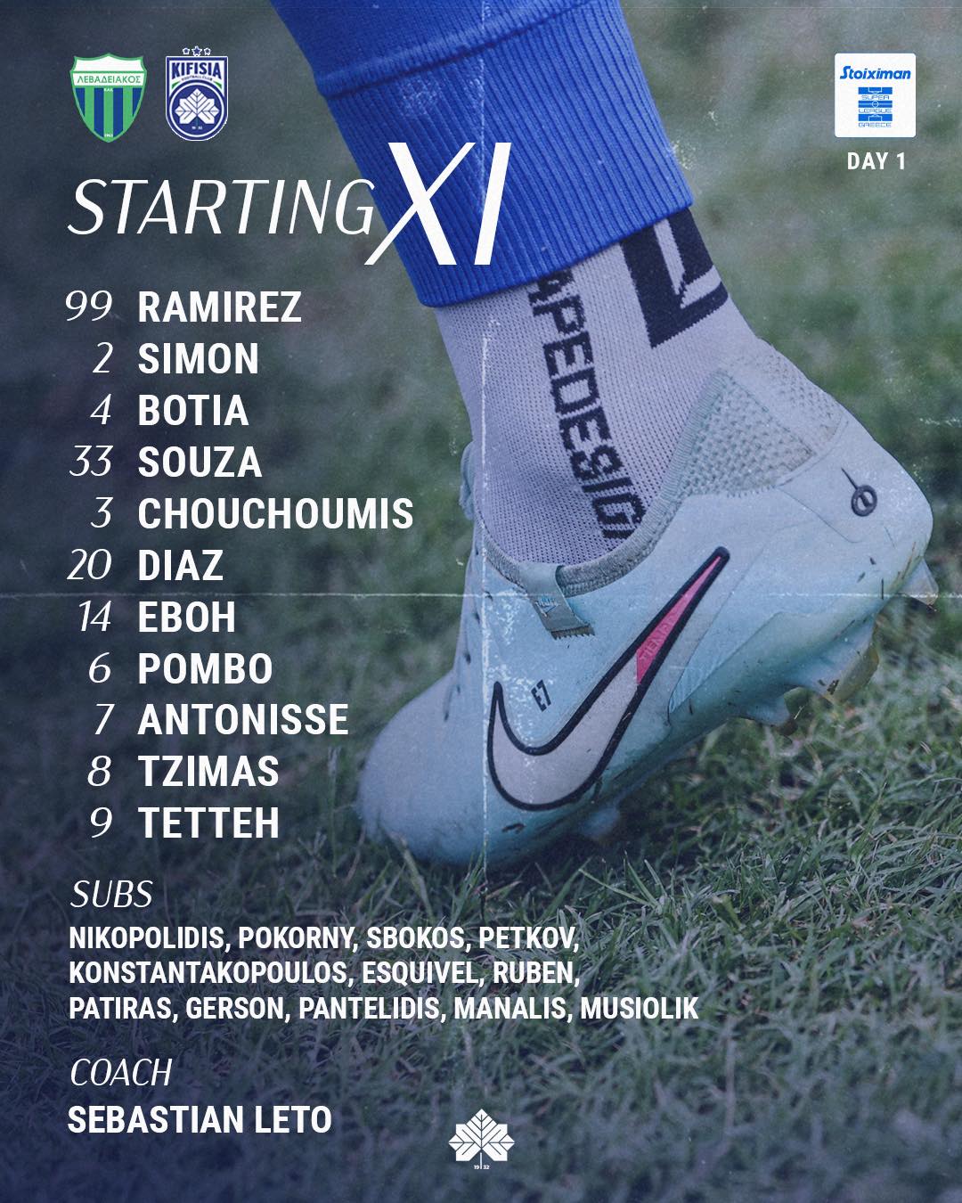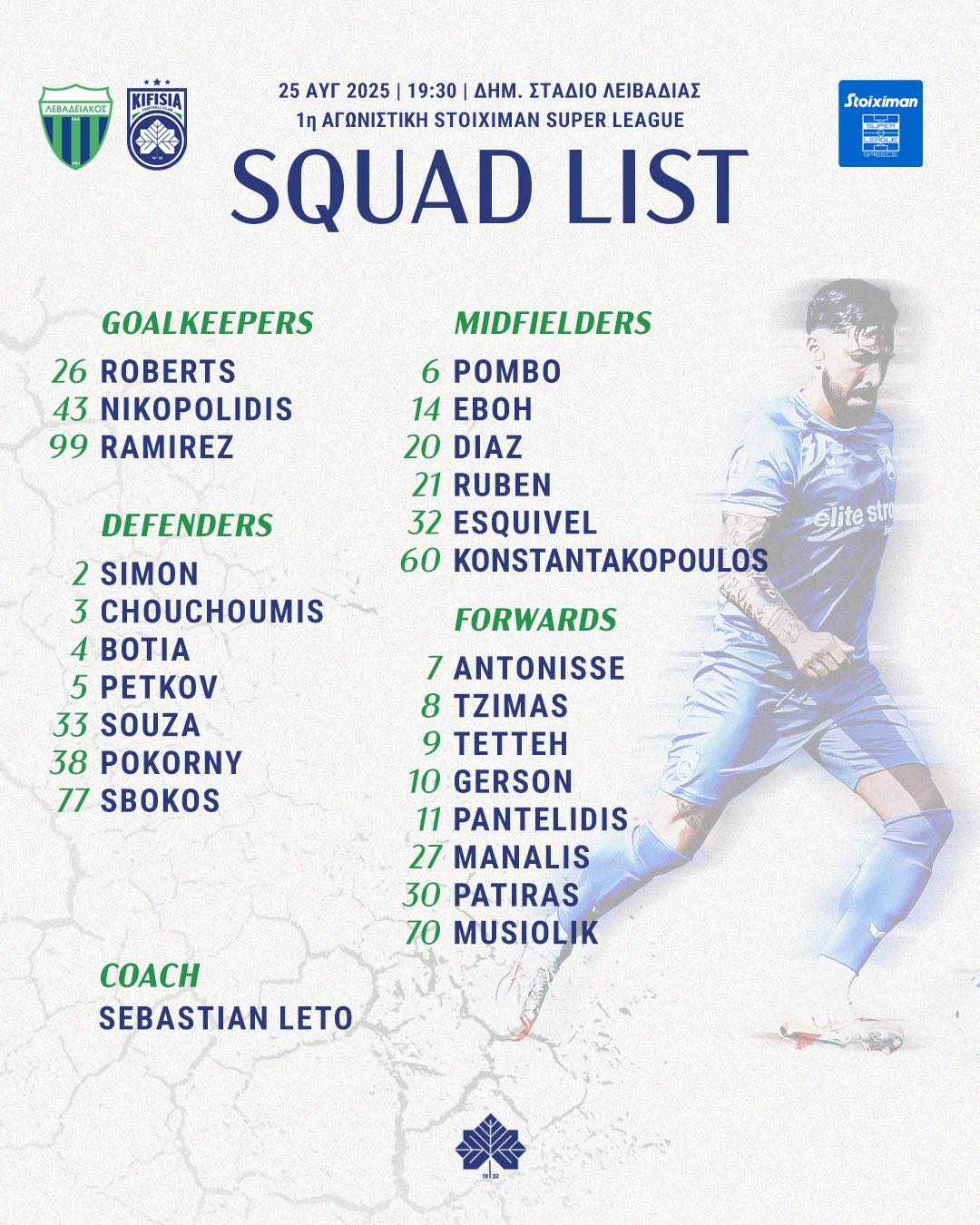 Για την Κηφισιά ο Λέτο άφησε στα αποδυτήρια τον Τζίμα και στην θέση του πέρασε τον Ζέρσον Σόουζα.