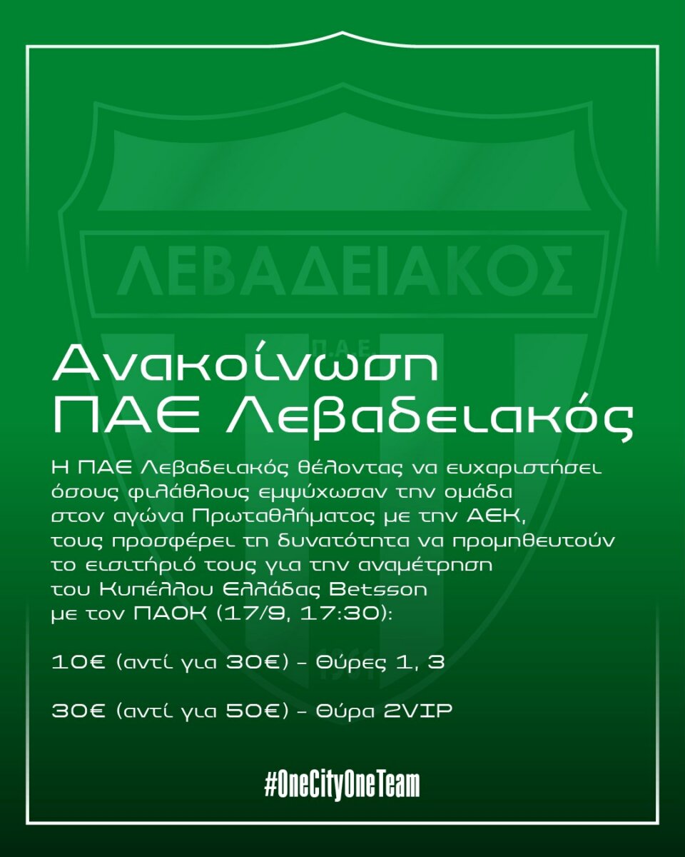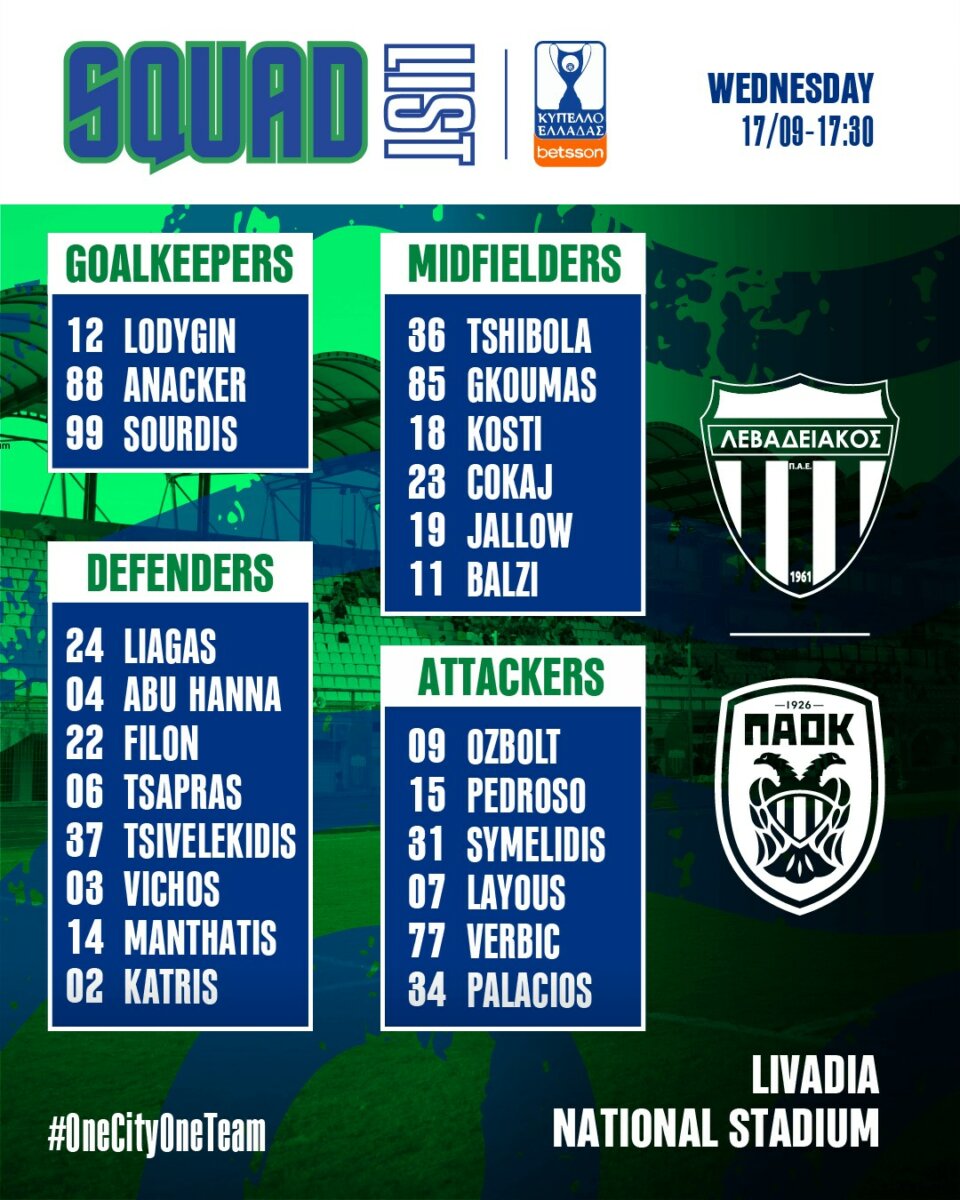 Ενας εκπληκτικός Λεβαδειακός (“να’ χα 1000 μάτια να τον βλέπω”), στον αγώνα που έδωσε (17/9) στο δημοτικό στάδιο της Λιβαδειάς “Λάμπρος Κατσώνης”, στο πλαίσιο της πρεμιέρας (1η αγωνιστική) της “League Phase” (του νέου “format”) του “Κυπέλλου Ελλάδας Betsson” της σεζόν 2025-2026, πραγματοποίησε εντυπωσιακή εμφάνιση και “πάτησε” την ομάδα του Π.Α.Ο.Κ. επικρατώντας απόλυτα δίκαια με 4-1!!!