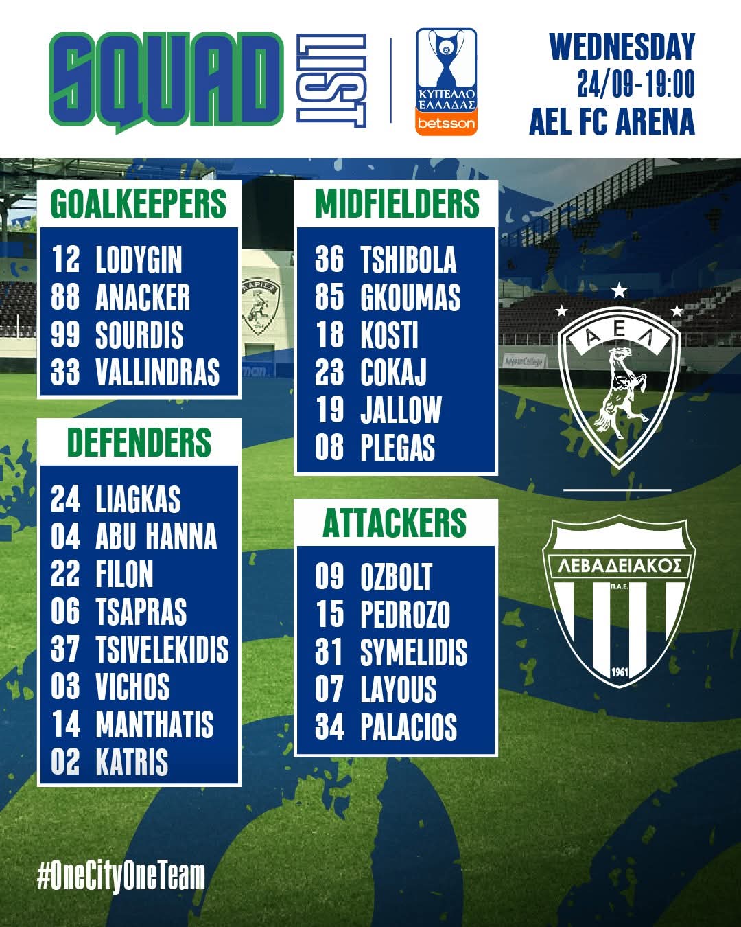 Με την προπόνηση που πραγματοποιήθηκε στο προπονητικό κέντρο της Π.Α.Ε., στον Αγιο Σπυρίδωνα, ολοκληρώθηκε η μίνι προετοιμασία των παιχτών του Λεβαδειακού για τον αυριανό (Τετάρτη, 24/9 – 19:00′) αγώνα, με την ομάδα της Π.Α.Ε. “Α.Ε.Λ.”, στο γήπεδο της A.E.L. F.C. arena”, στο πλαίσιο της 2ης αγωνιστικής της “League Phase”, του “Κυπέλλου Ελλάδας Betsson” της σεζόν 2025-2026!