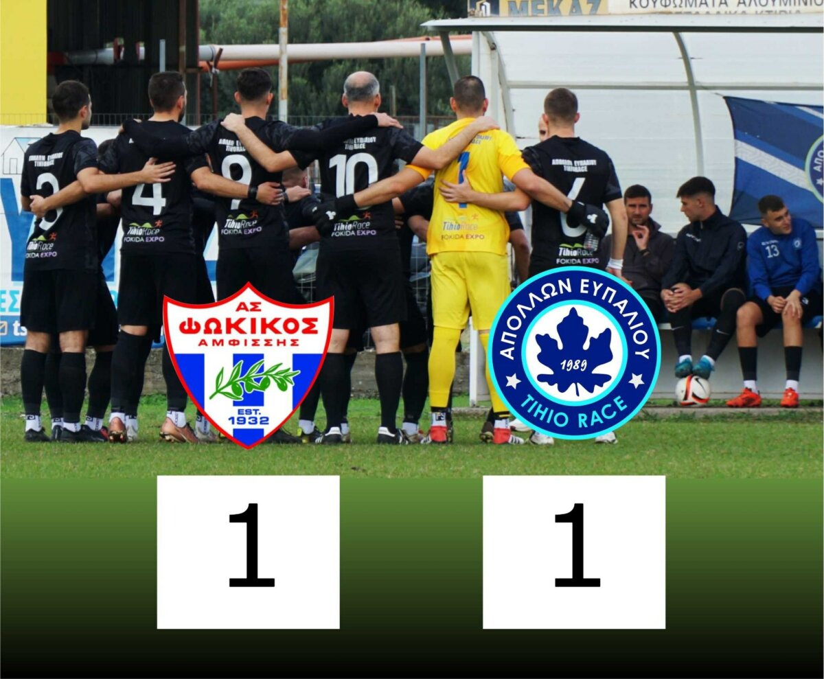 Ισόπαλες με σκορ 1-1 αναδείχθηκαν η ομάδα του “Φωκικός” Α.Σ. και η ομάδα του Α.Σ. “Απόλλων Ευπάλιου” στο μεγάλο ματς κορυφής της 6ης αγωνιστικής της Α’ κατηγορίας της Ε.Π.Σ. Φωκίδας που διεξήχθη (30/11) στο γήπεδο του δημοτικού σταδίου της Αμφισσας.