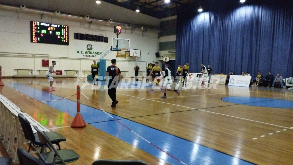 Στον συναρπαστικό αγώνα που διεξήχθη (29/11) στο δημοτικό κλειστό γυμναστήριο της Λιβαδειάς στο πλαίσιο της 6ης αγωνιστικής του προγράμματος του πρωταθλήματος της Α’ κατηγορίας ανδρών της Ε.Σ.Κ.Α.Σ.Ε. η κανονική διάρκεια έληξε με σκορ 68-68 και η πρώτη παράταση με σκορ 76-76.