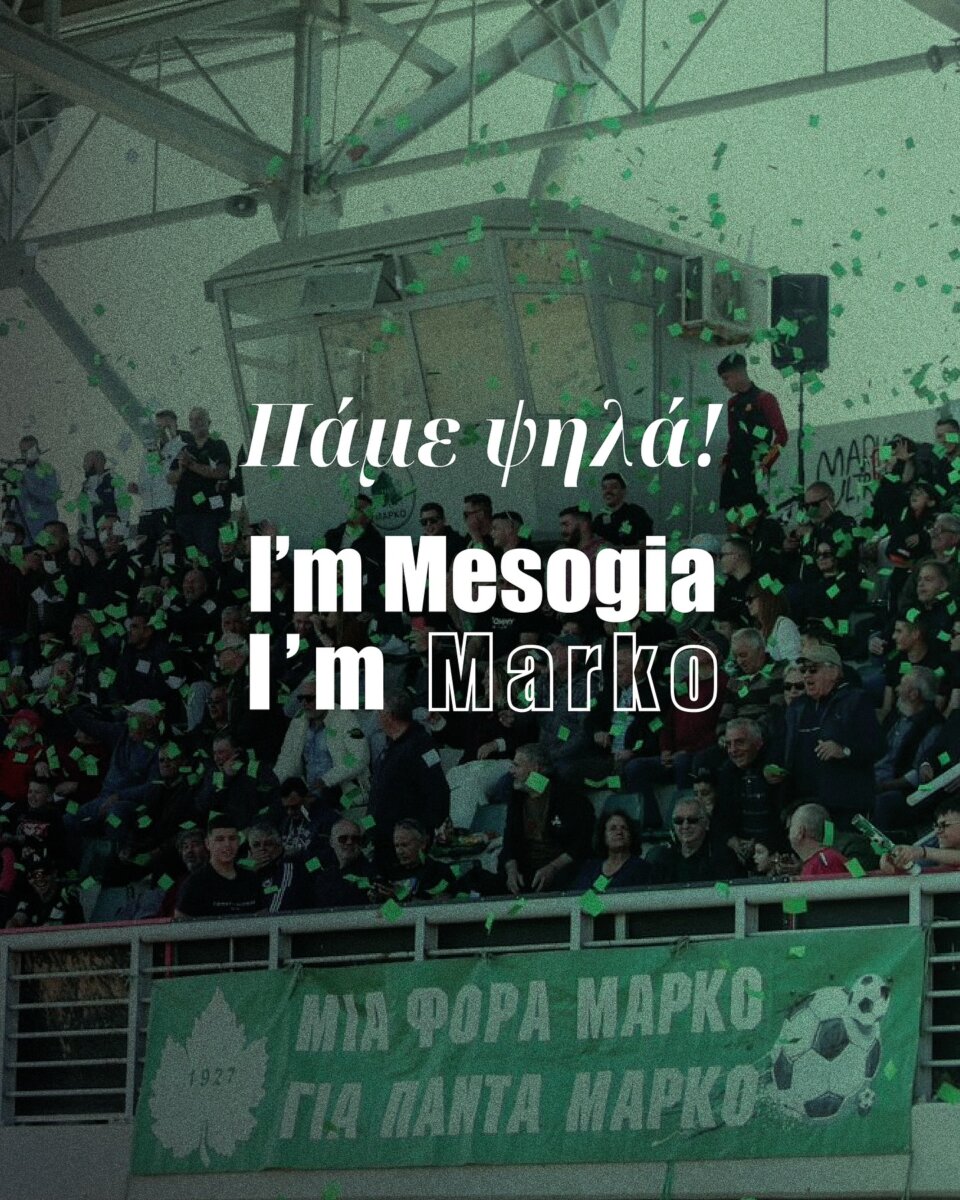 Ανακοίνωση εξέδωσε η Π.Α.Ε. Μαρκό μέσω της οποίας καλεί τους φίλους της ομάδας να δώσουν δυναμικό παρών στον αγώνα κυπέλλου με τον Λεβαδειακό.