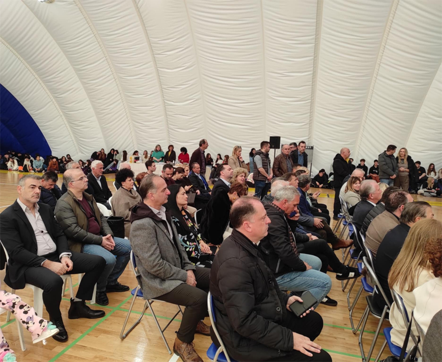 “Σήμερα είναι μια ιδιαίτερα σημαντική ημέρα για τον Δήμο μας. Με μεγάλη χαρά εγκαινιάζουμε το νέο κλειστό γυμναστήριο με αεροϋποστηριζόμενο θόλο, μια σύγχρονη αθλητική εγκατάσταση που δημιουργήθηκε με όραμα, επιμονή και συνεργασία”, σημείωσε μεταξύ άλλων ο κ. Καραμάνης.
