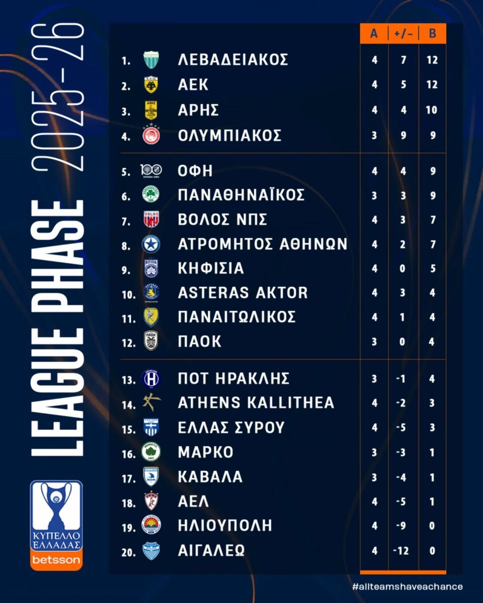 Την Τετάρτη 17/12 θα “πέσει η αυλαία” στην “League Phase” του “Κυπέλλου Ελλάδας Betsson” 2025-2026!
