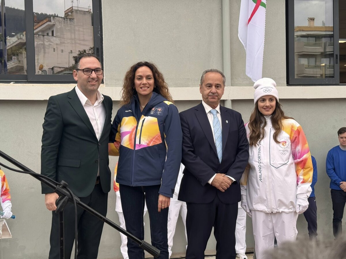 Χαιρετισμό απηύθυναν ο Αντιδήμαρχος Παιδείας, Πολιτισμού, Αθλητισμού κ. Νότης Αγνιάδης, η εκπρόσωπος της Οργανωτικής Επιτροπής Milano Cortina 2026 κ. Elisa Santoni και ο εκπρόσωπος της Ελληνικής Ολυμπιακής Επιτροπής κ. Θωμάς Τόκας.