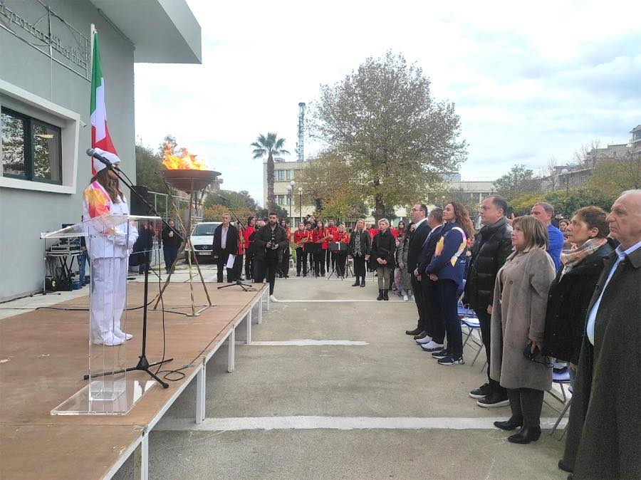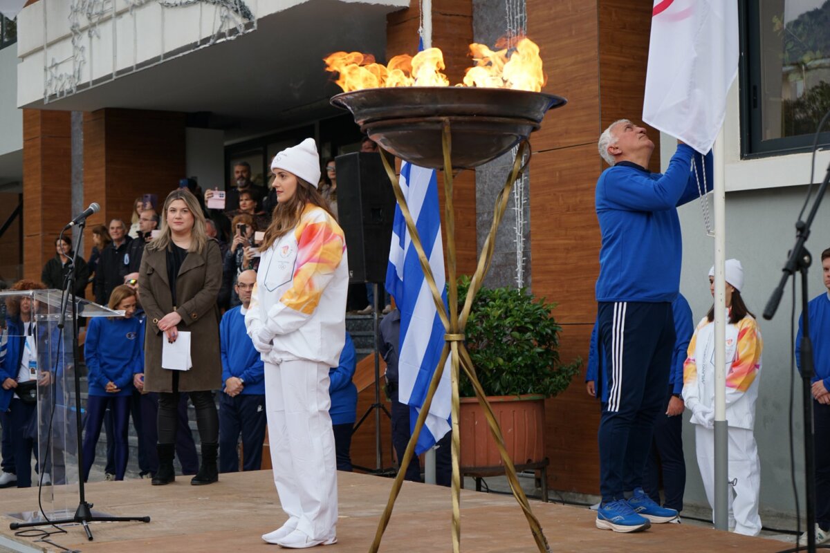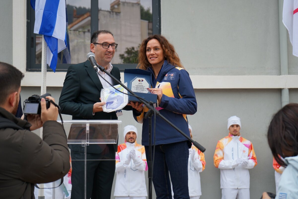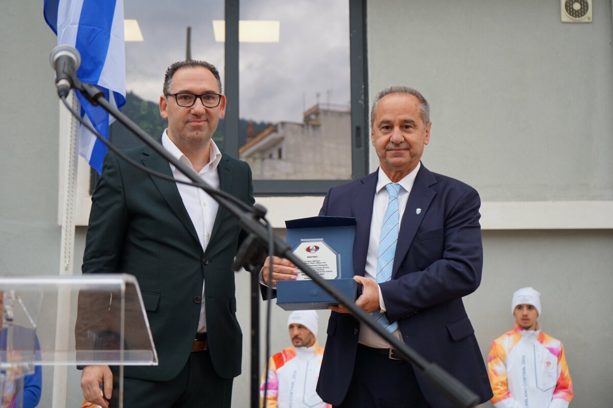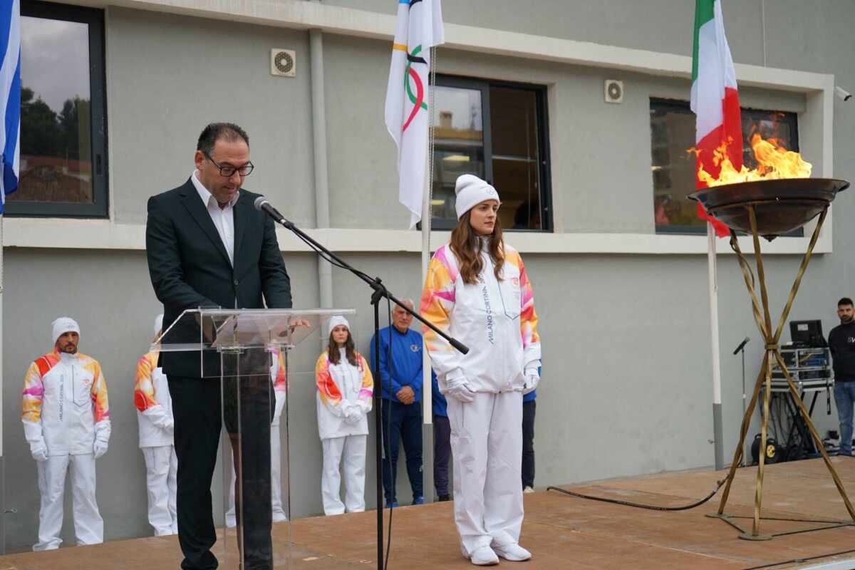 Χαιρετισμό απηύθυναν ο Αντιδήμαρχος Παιδείας, Πολιτισμού, Αθλητισμού κ. Νότης Αγνιάδης, η εκπρόσωπος της Οργανωτικής Επιτροπής Milano Cortina 2026 κ. Elisa Santoni και ο εκπρόσωπος της Ελληνικής Ολυμπιακής Επιτροπής κ. Θωμάς Τόκας.