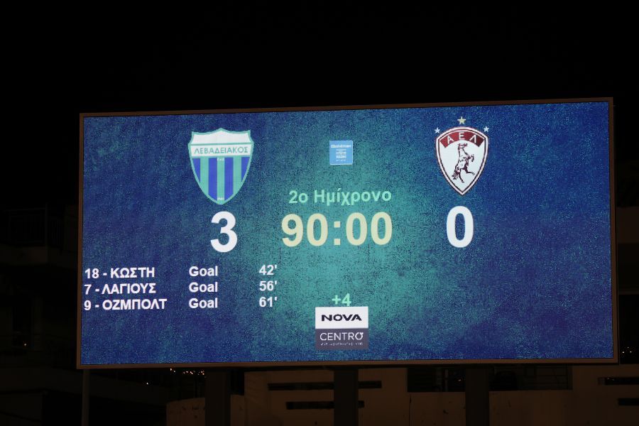 Τελικό αποτέλεσμα: Λεβαδειακός-Λάρισα 3-0.