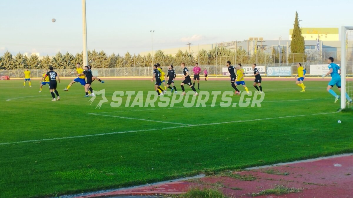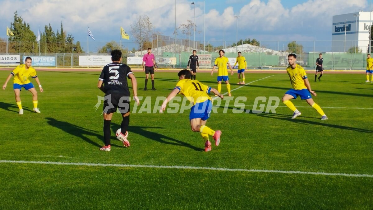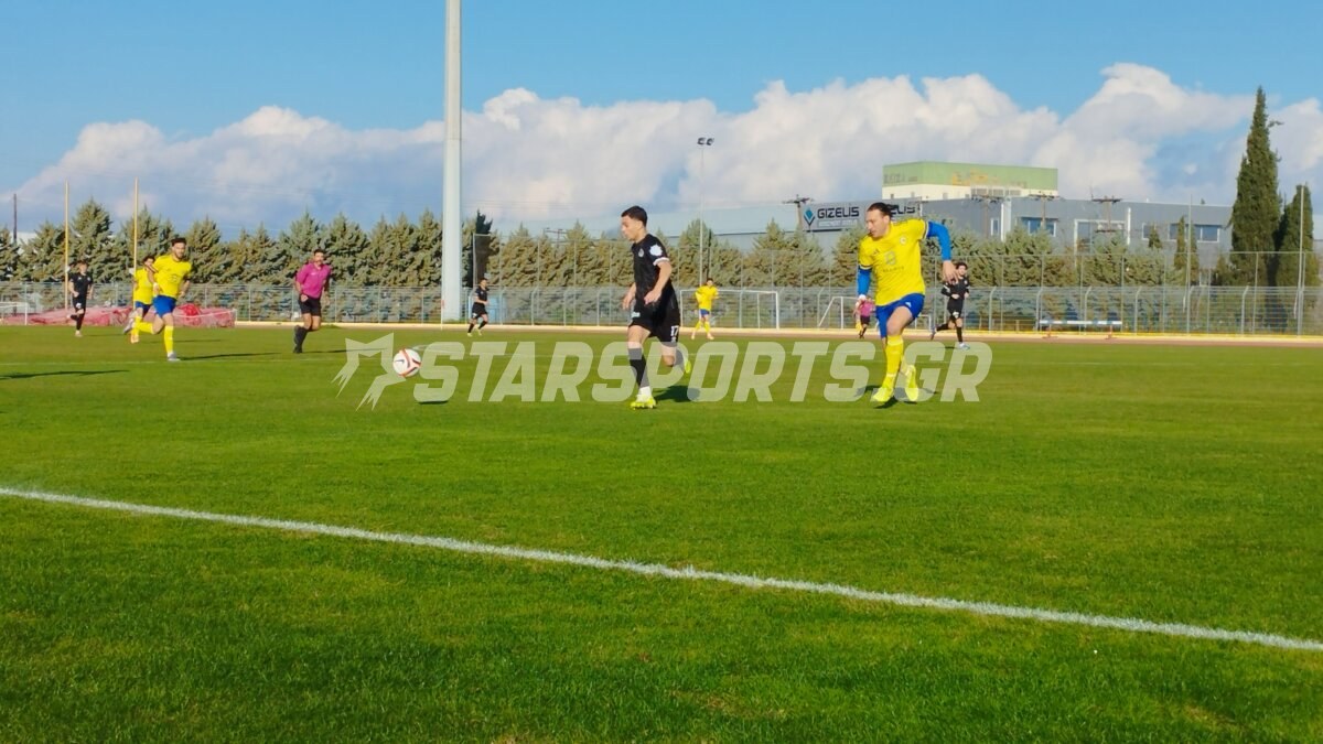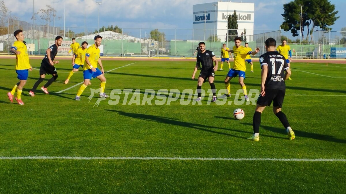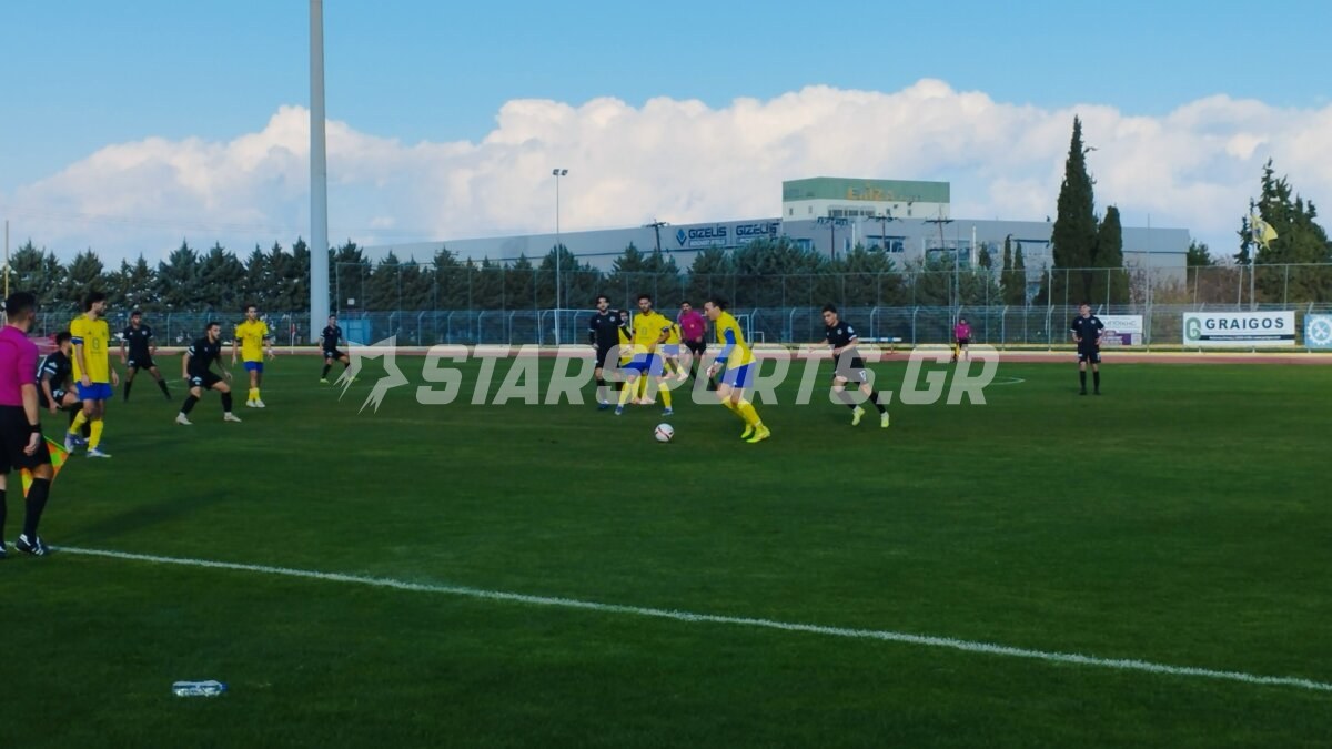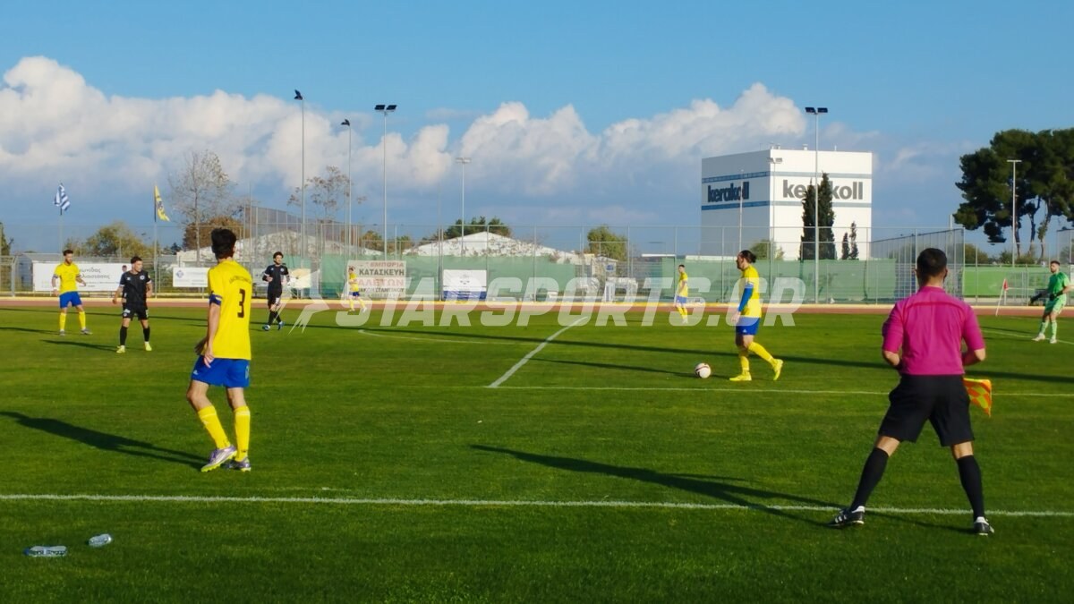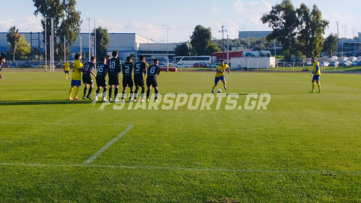 Οι φιλοξενούμενοι προηγήθηκαν στο σκορ στο 30’ με την εύστοχη εκτέλεση του αρχηγού, Μανιώτη, του πέναλτι που κέρδισε ο Δρόσος από τον Τσίκλο, για να είναι το 0-1 σκορ ημιχρόνου.