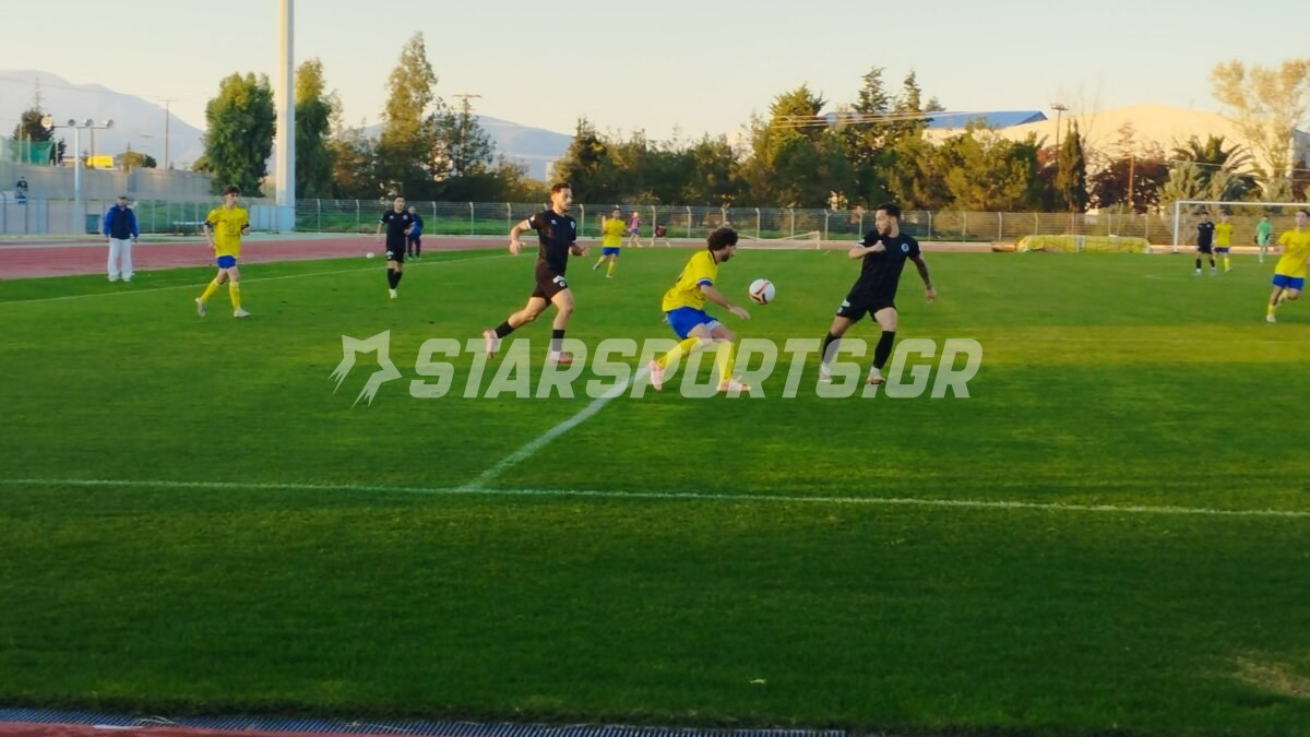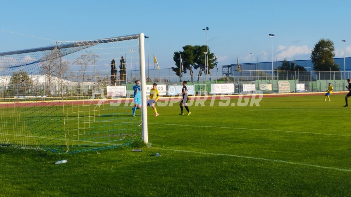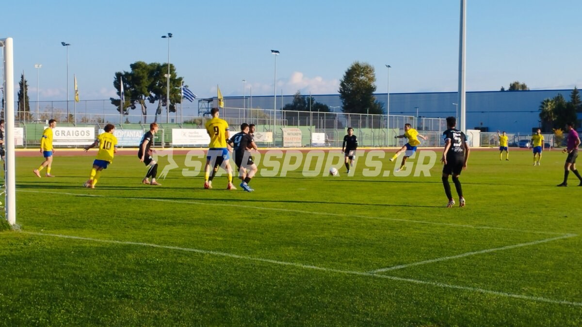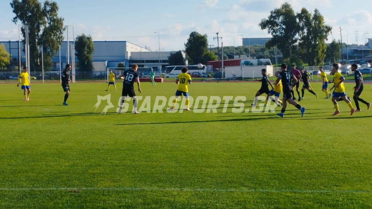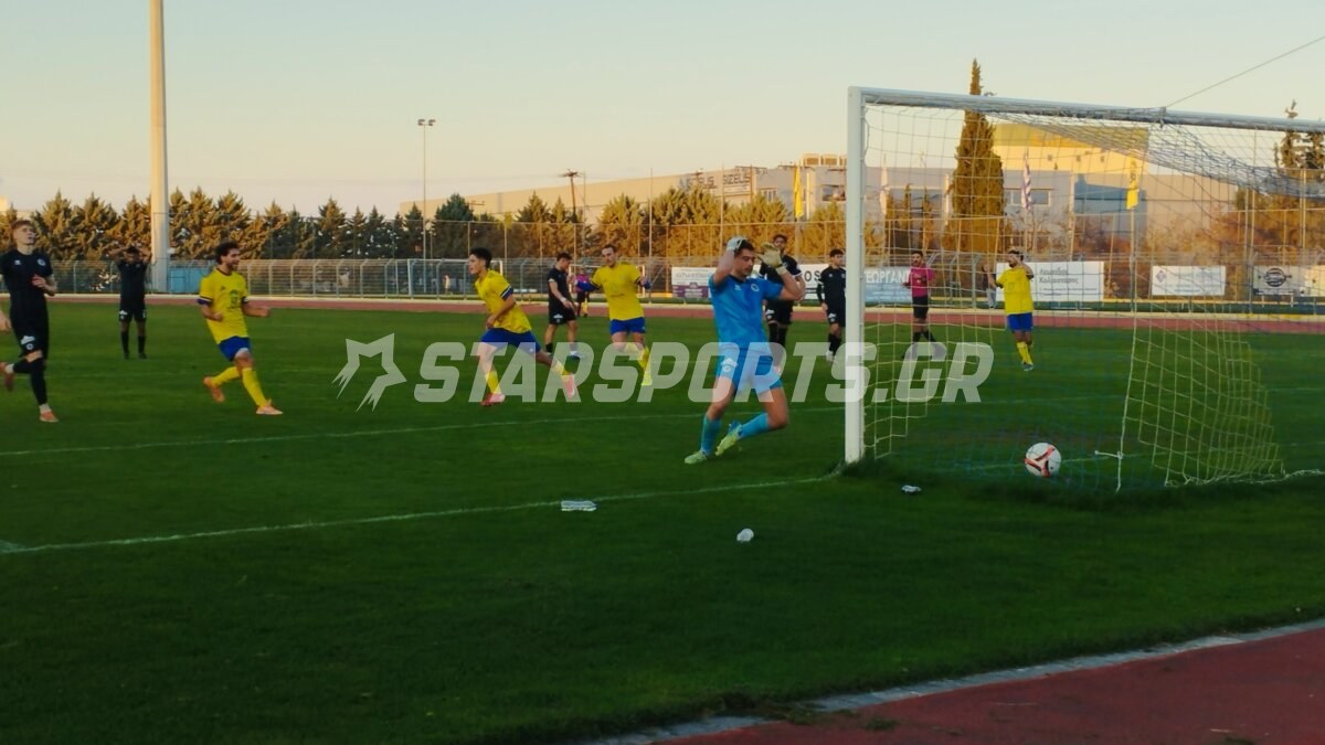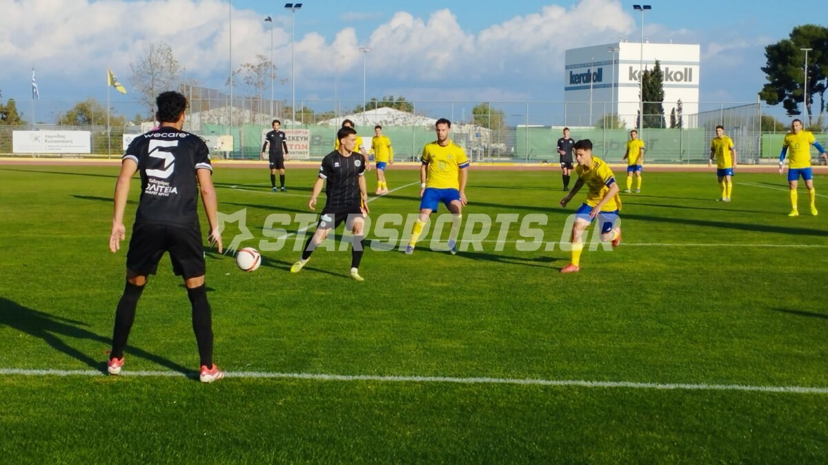 Οι φιλοξενούμενοι προηγήθηκαν στο σκορ στο 30’ με την εύστοχη εκτέλεση του αρχηγού, Μανιώτη, του πέναλτι που κέρδισε ο Δρόσος από τον Τσίκλο, για να είναι το 0-1 σκορ ημιχρόνου.