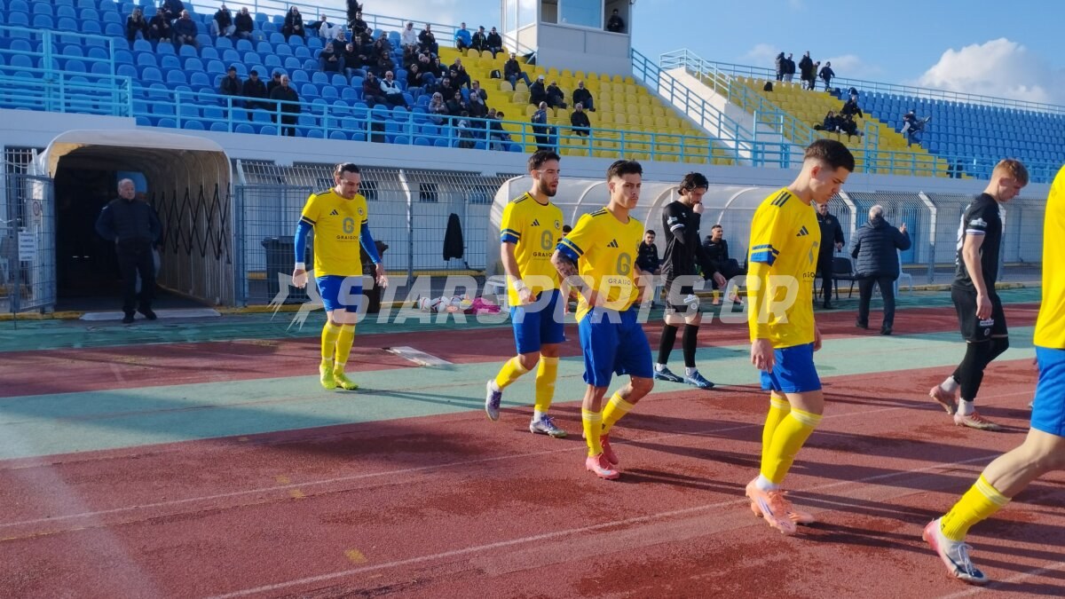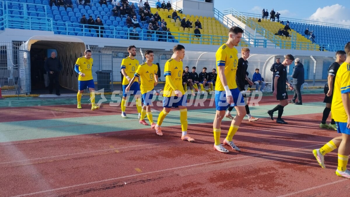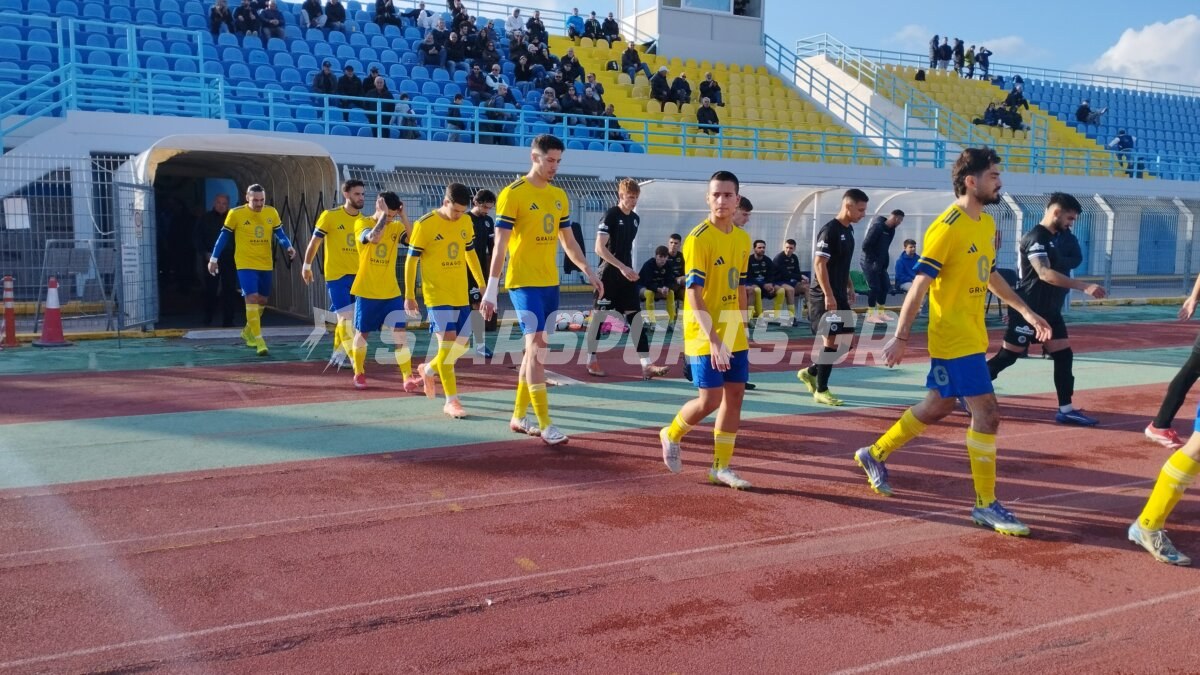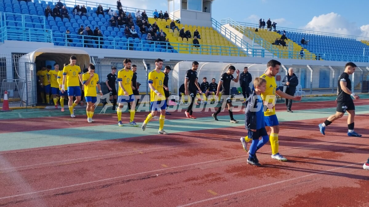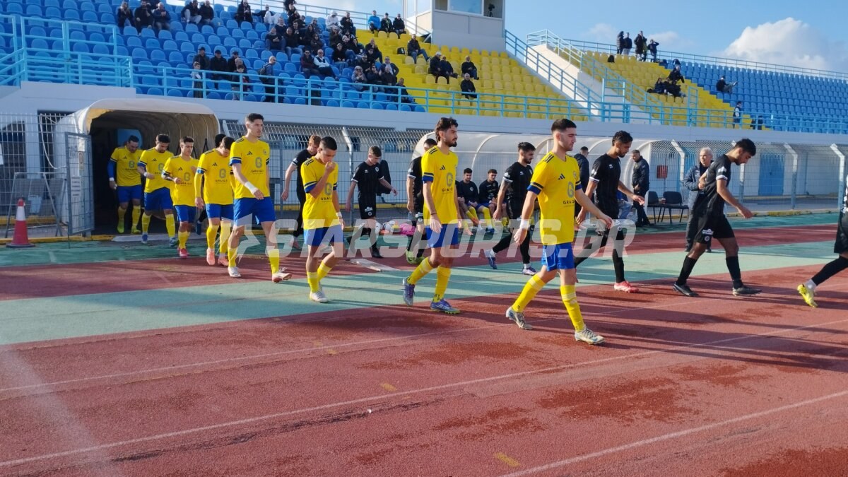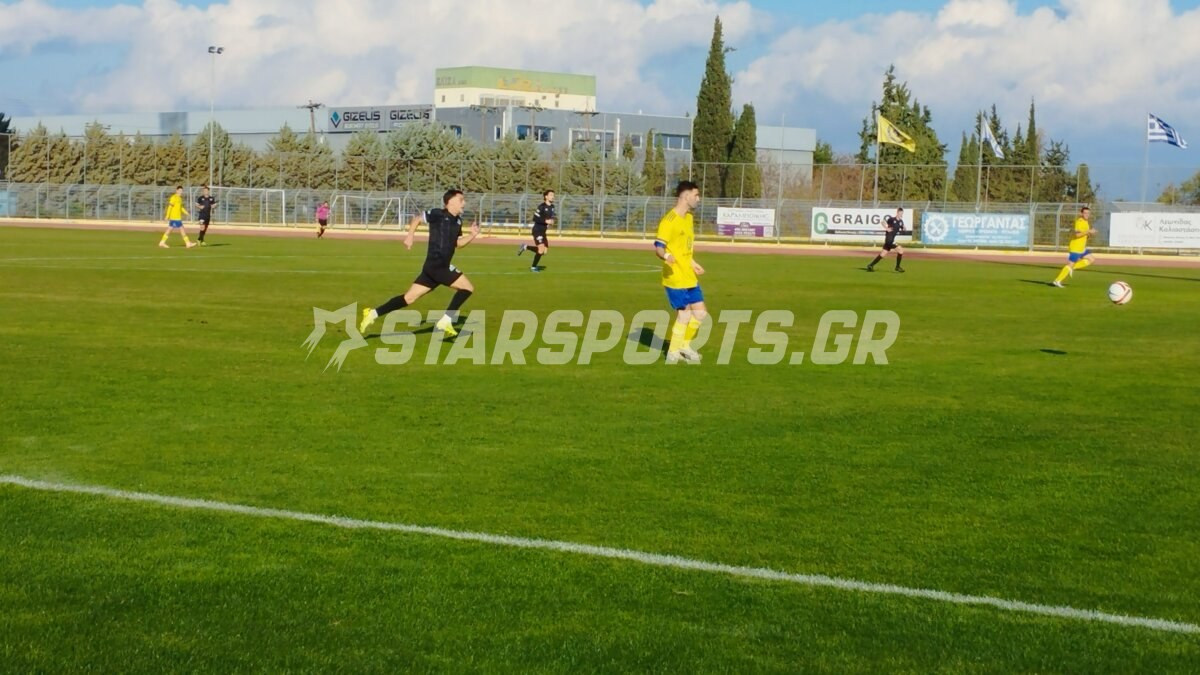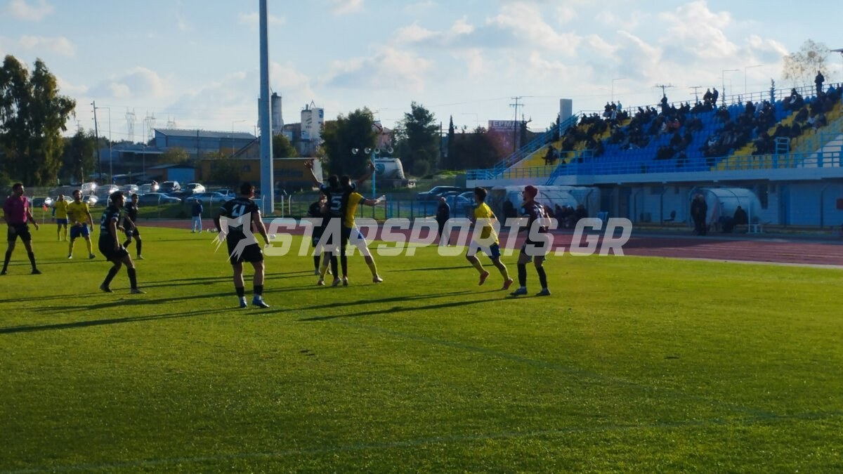 Οι φιλοξενούμενοι προηγήθηκαν στο σκορ στο 30’ με την εύστοχη εκτέλεση του αρχηγού, Μανιώτη, του πέναλτι που κέρδισε ο Δρόσος από τον Τσίκλο, για να είναι το 0-1 σκορ ημιχρόνου.