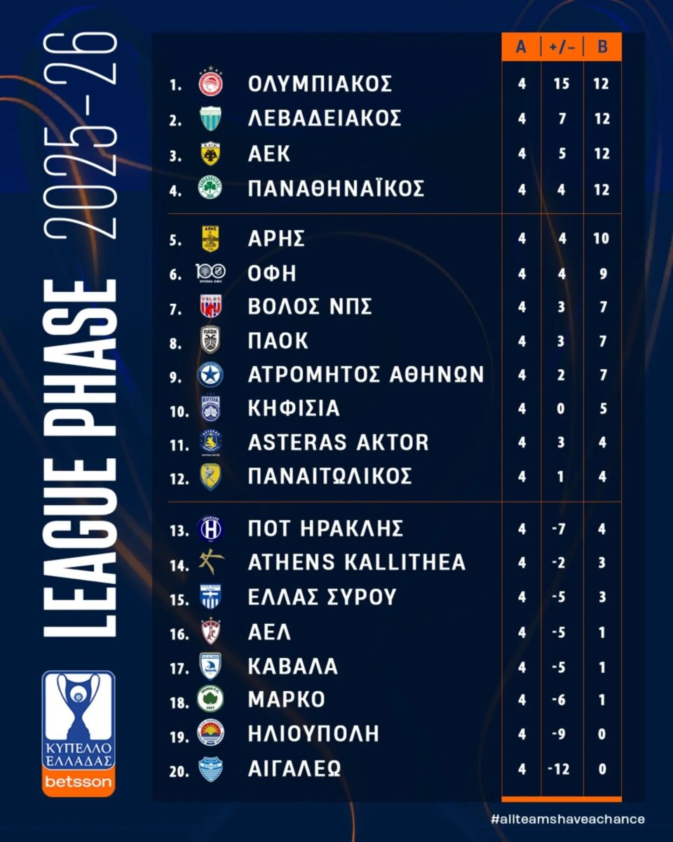 *Δείτε τον τρόπο διεξαγωγής του Κυπέλλου Ελλάδας Betsson 2025-26 στον παρακάτω σύνδεσμο: