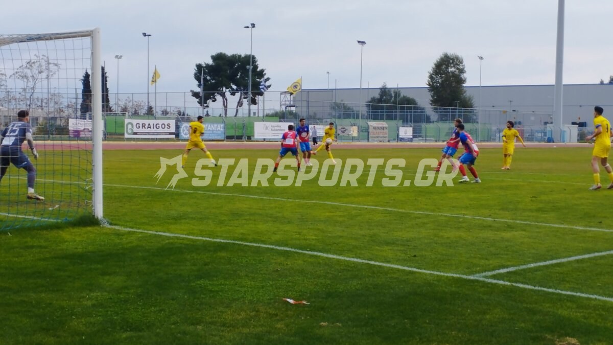 47′ ο Ρεσβάνης έβγαλε τον Αγουρζενιτζίδη στο τετ-α-τετ με τον Γαλάνη, ο κίπερ του Τηλυκράτη απέκρουσε το πλασέ.