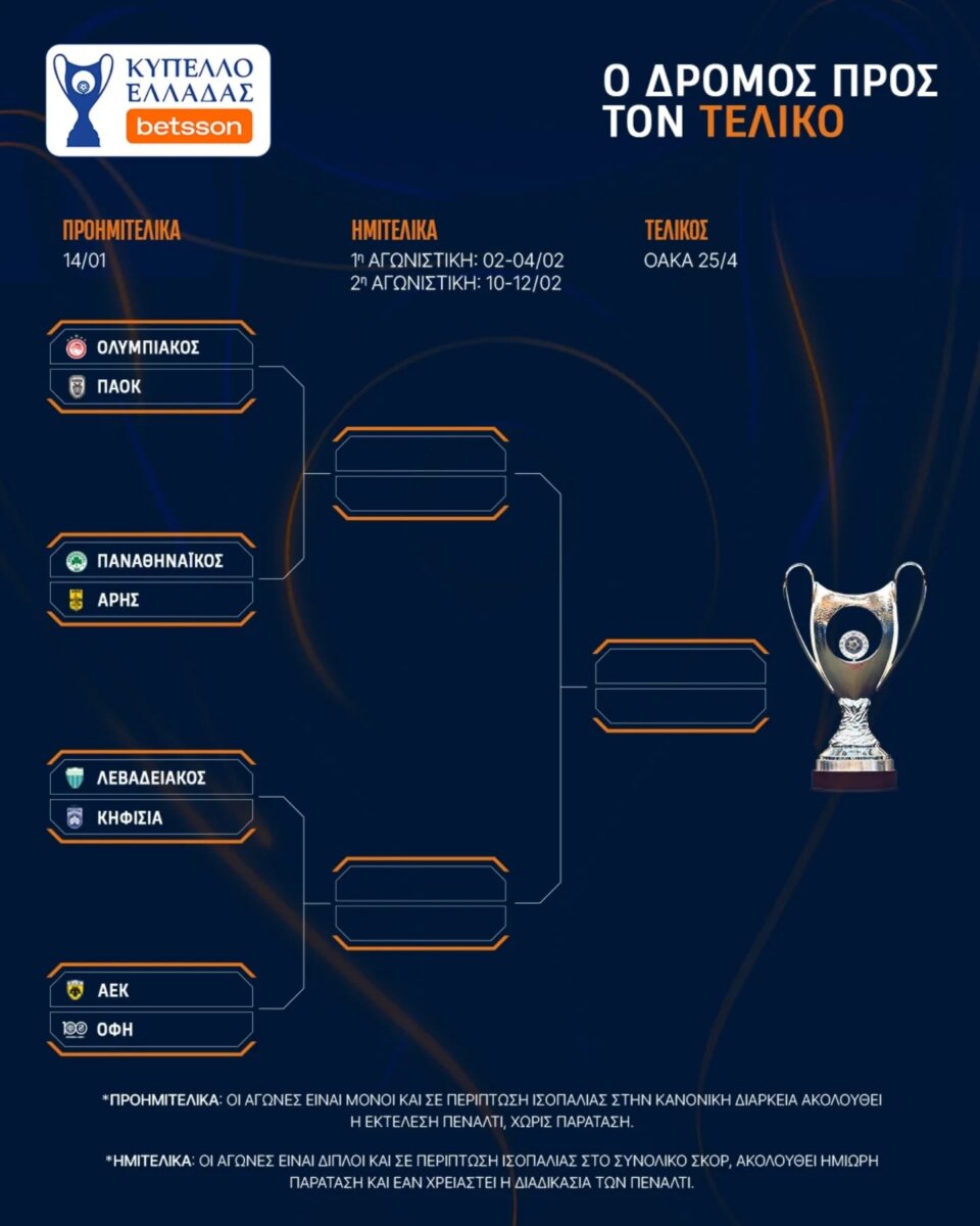 *Δείτε τον τρόπο διεξαγωγής του Κυπέλλου Ελλάδας Betsson 2025-26 και στον παρακάτω σύνδεσμο: