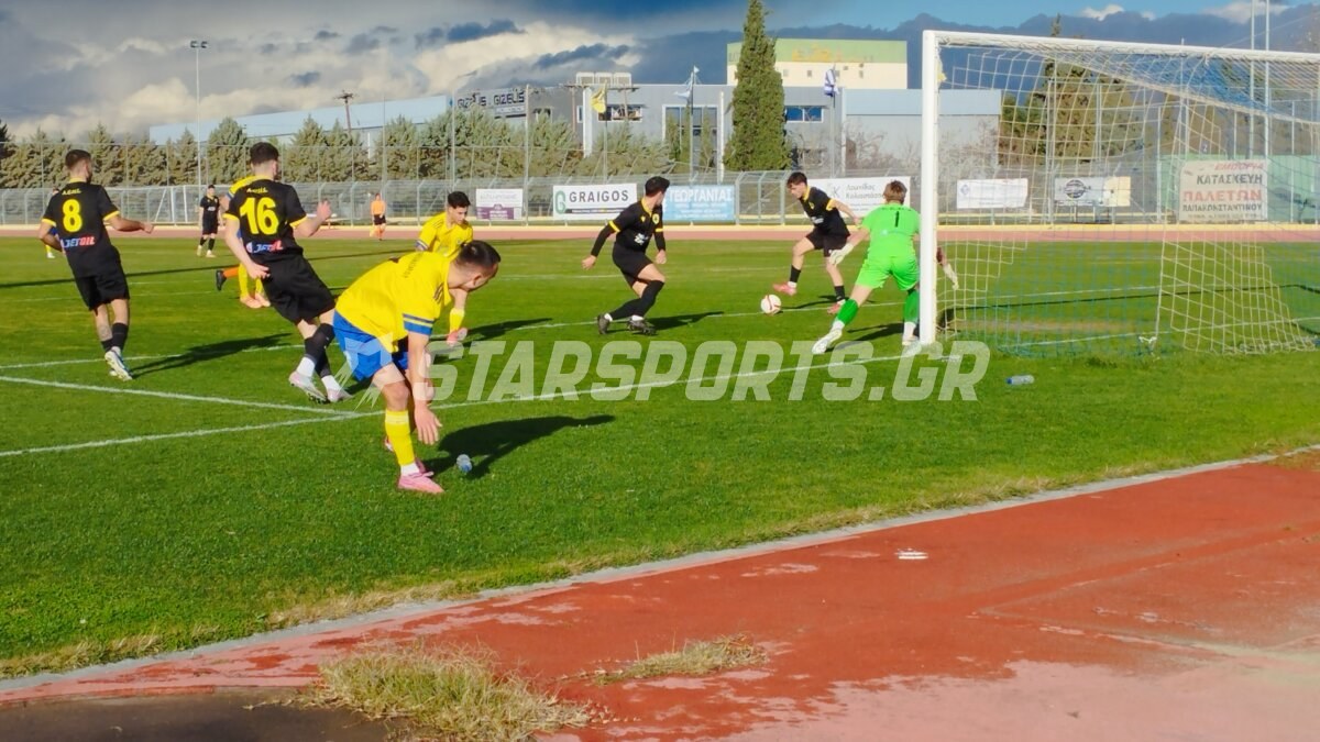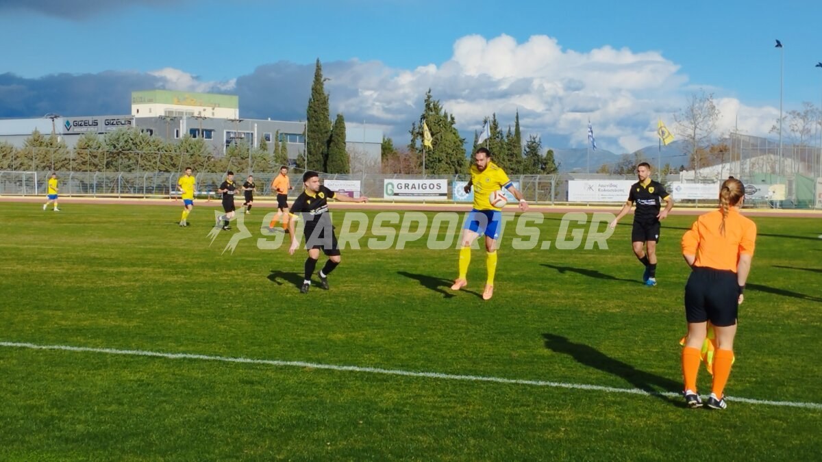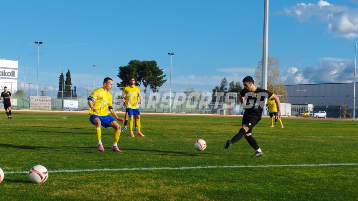 Οι φιλοξενούμενοι προηγήθηκαν στο σκορ στο 27’ με κοντινό πλασέ του Παππά και στο 35’ ο Κατσέλης επίσης με κοντινό πλασέ έκανε το 0-2 που ήταν και σκορ ημιχρόνου.