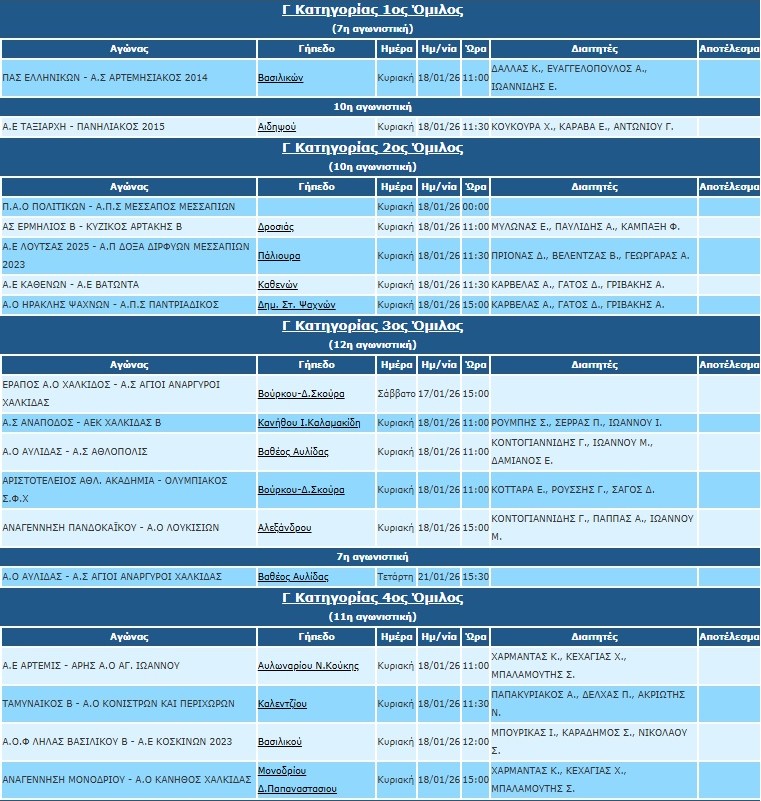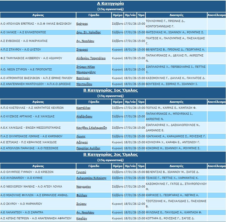 Ο Απόλλων Ερέτριας που ενισχύθηκε σημαντικά και είναι ξεκάθαρο ότι δεν θα κινδυνεύσει θα φιλοξενήσει τον Λήλα ο οποίος προέρχεται από εντός έδρας ήττα σοκ. Ο θριαμβευτής της περασμένης αγωνιστικής Σταυρός υποδέχεται τον Δύστο με στόχο την τρίτη συνεχόμενη νίκη προκειμένου να πλησιάσει στο βαθμό την ομάδα της νότιας Εύβοιας.