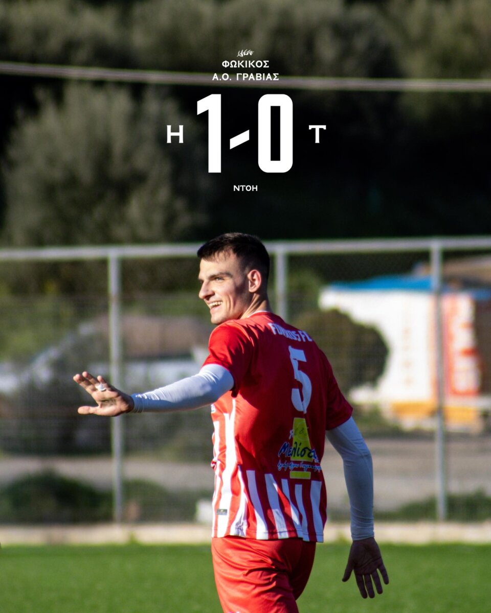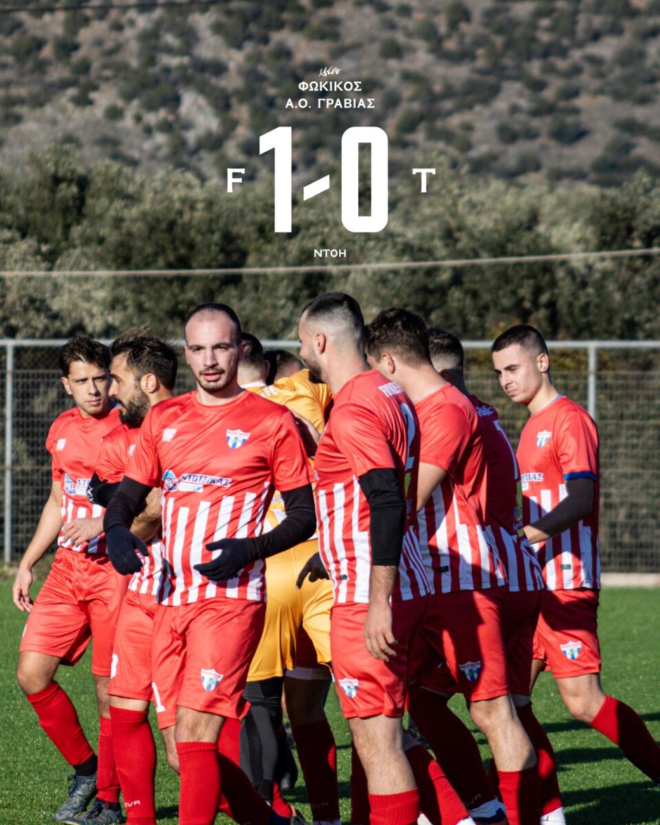 Η ομάδα του “Φωκικός” Α.Ο., χάρη στο γκολ του Κώστα Ντόη, με κοντινή κεφαλιά έπειτα από εκτέλεση κόρνερ του Γιώργου Ανδρεόπουλου, επικράτησε με 1-0 της ομάδας του Α.Ο. Γραβιάς “Οδυσσέας Ανδρούτσος”, στο ματς που έγινε (18/1) στο γήπεδο του αθλητικού κέντρου της Ε.Π.Σ. Φωκίδας, στο πλαίσιο της 9ης αγωνιστικής της Α’ φάσης (κανονική περίοδος) του πρωταθλήματος της Α’ κατηγορίας 2025-2026.