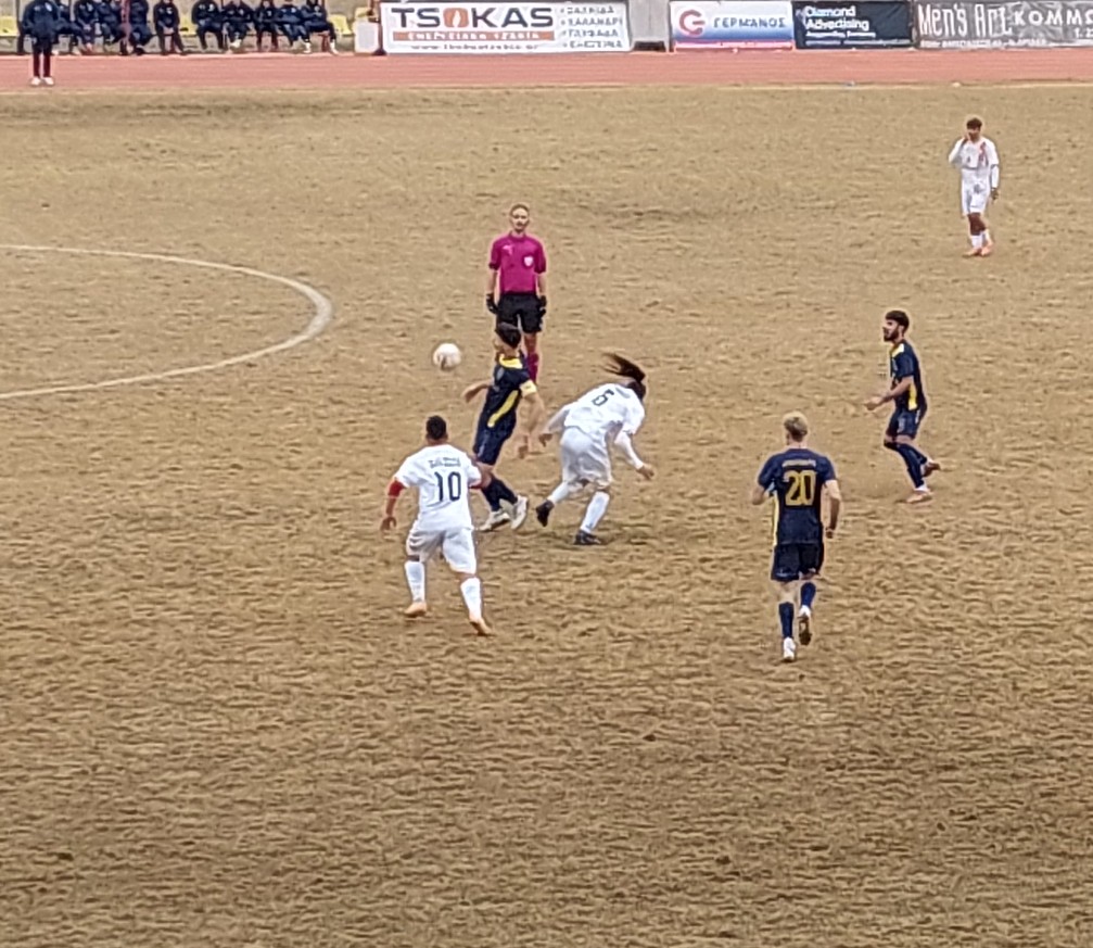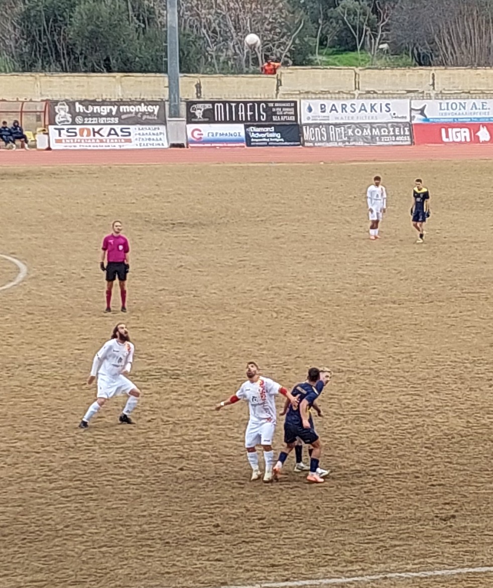 Καλοχτυπημένο φάουλ σαν κοντινό κόρνερ από δεξιά στο 30΄ από τον Καραγιάννη η μπάλα στο οριζόντιο δοκάρι του Θεοχάρη και άουτ.