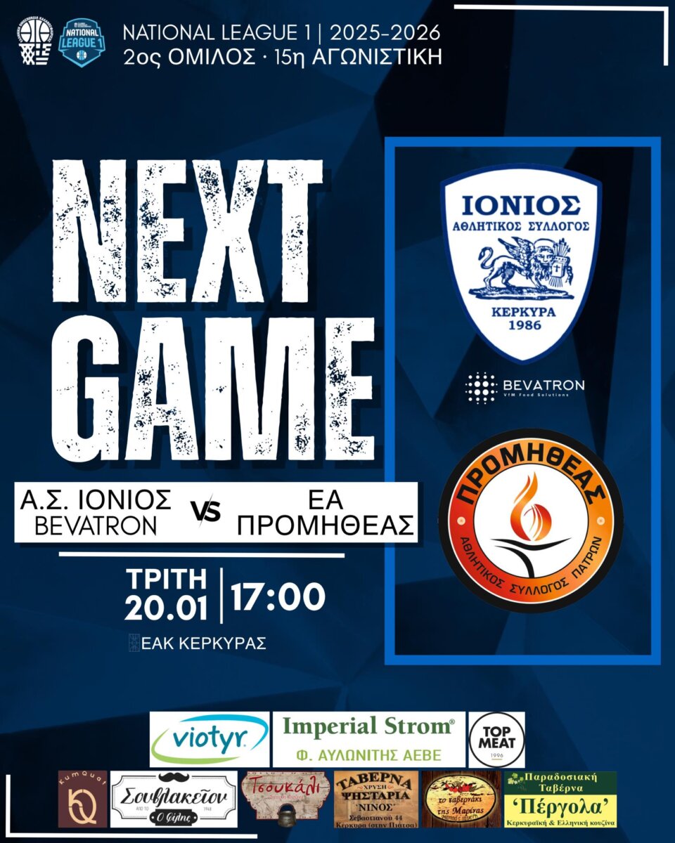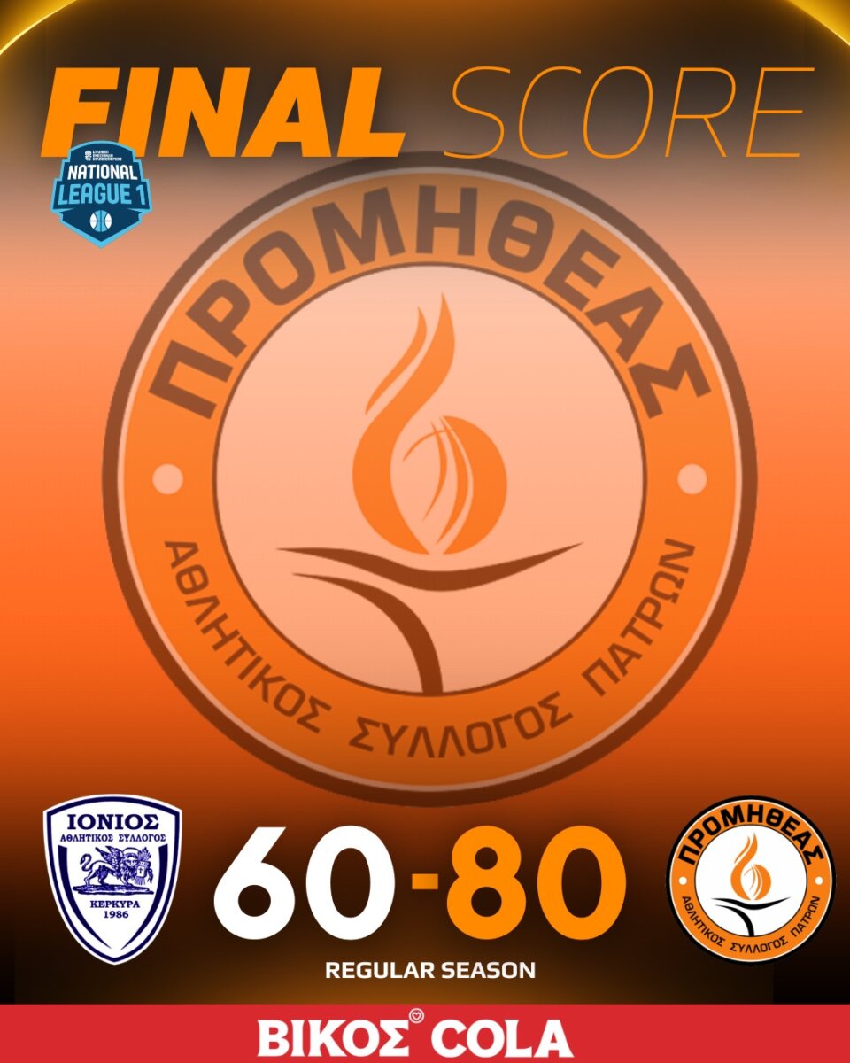 Στο ματς που διεξήχθη απόψε, Τρίτη 20 Ιανουαρίου, στο Ε.Α.Κ. της Κέρκυρας και το οποίο ολοκλήρωσε την 15η αγωνιστική της Α’ φάσης (regular season) του προγράμματος, του Β’ ομίλου, του πρωταθλήματος της “National League 1” της σεζόν 2025-2026, η ομάδα της Ε.Α. Πάτρας “Προμηθέας 2014” επικράτησε της γηπεδούχου ομάδας του “Ιόνιος” Α.Σ. με 80-60.