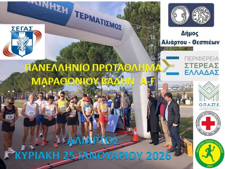 Από τον Σ.Ε.Γ.Α.Σ. προκηρύσσεται το αγώνισμα του Μαραθωνίου Βάδην Ανδρών – Γυναικών, του Πανελληνίου Πρωταθλήματος Ανδρών – Γυναικών για το 2026.