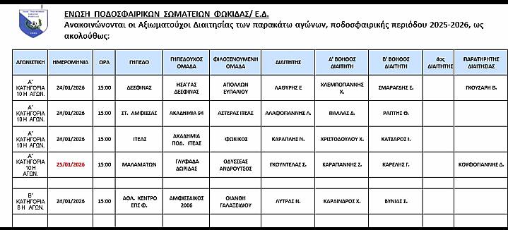 Ο Απόλλων Ευπαλίου νίκησε 2-1 τον Ησαΐα στην Δεσφίνα, o Φωκικός 7-0 την Ακαδημία Ποδοσφαίρου στην Ιτέα, η Ακαδημία ’94 νίκησε 2-1 τον Αστέρα Ιτέας στην Αμφισσα!