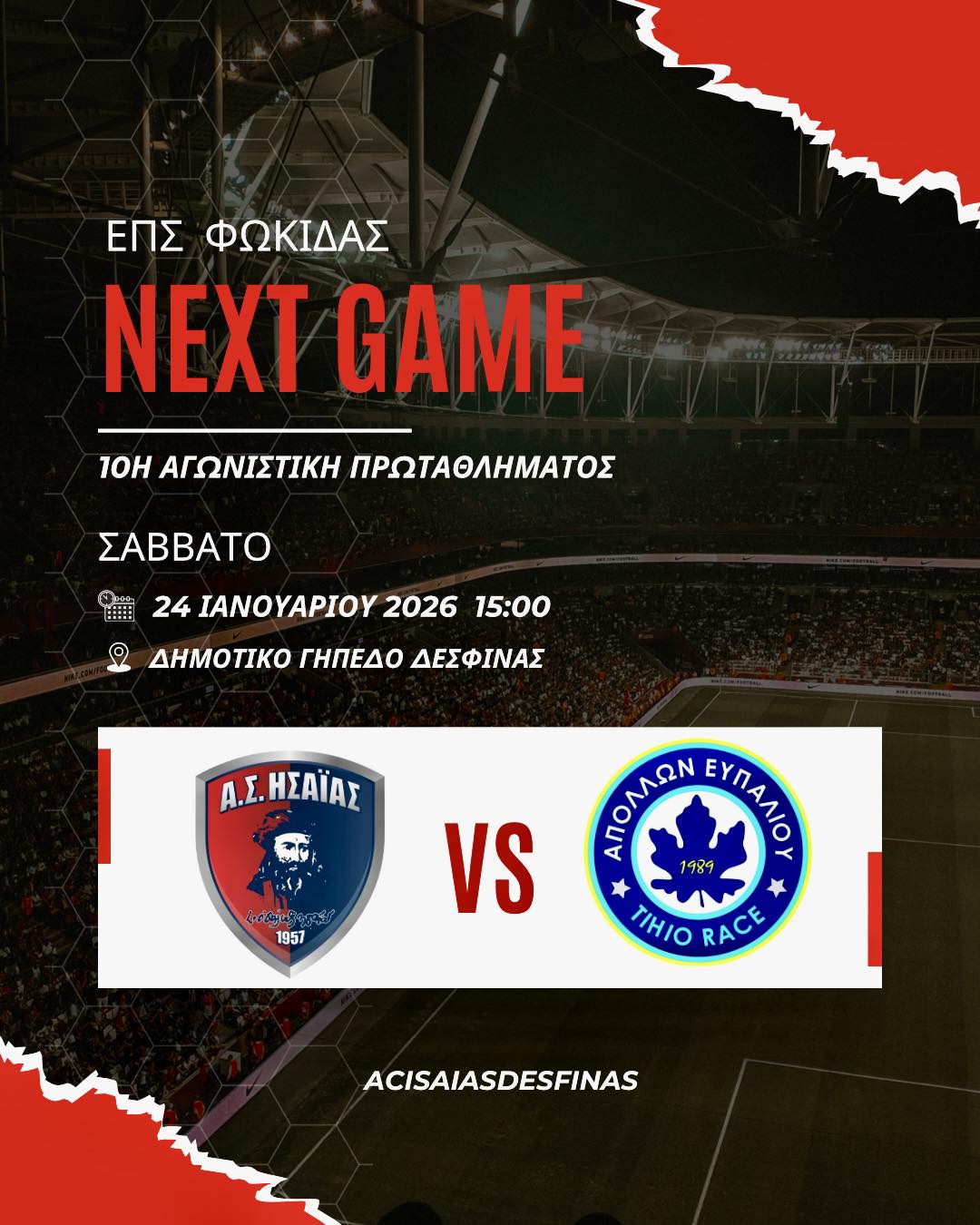 Αυτή ήταν η 8η νίκη για την ομάδα της Αμφισσας με την οποία έφτασε στους 26 βαθμούς και παραμένει στην 2η θέση, στο… κατόπι της ομάδας του Ευπάλιου.