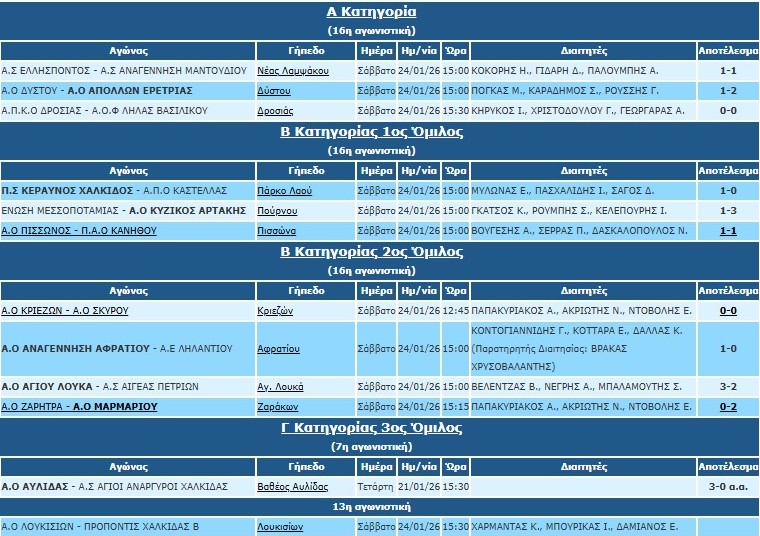 Με σημαντικό βαθμό έφυγε από τη Ν. Λάμψακο η Αναγέννηση Μαντουδίου. Ο Ελλήσποντος προηγήθηκε νωρίς με τον Κωνσταντάρα, αλλά οι φιλοξενούμενοι ισοφάρισαν στην επανάληψη με τέρμα του νεαποντηθέντα Βουλωμένου.