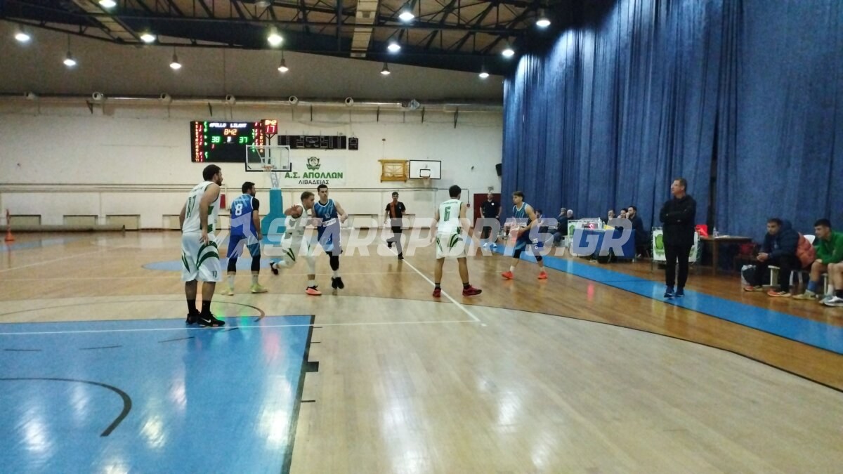 Α.Σ. “Απόλλων” Λιβαδειάς (Βασίλης Ροζάνας): Κατσαρός 2, Δοξάκης 12 (2), Ματθαίου 10, Κωτσαδάμ 8 (2), Πανουργιάς 8, Ζορμπάνος, Γκιουζέλης 12, Σταμέλος, Παπανδρέας, Φίκας 2, Ματζιώρης 14 (2), Ψιλόπουλος.