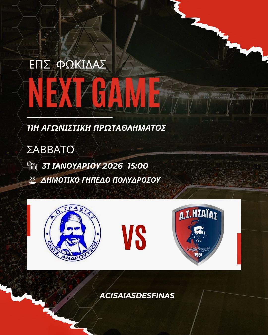 Α.Ο. ΓΡΑΒΙΑΣ “ΟΔΥΣΣΕΑΣ ΑΝΔΡΟΥΤΣΟΣ” – Α.Σ. “ΗΣΑΪΑΣ” ΔΕΣΦΙΝΑΣ