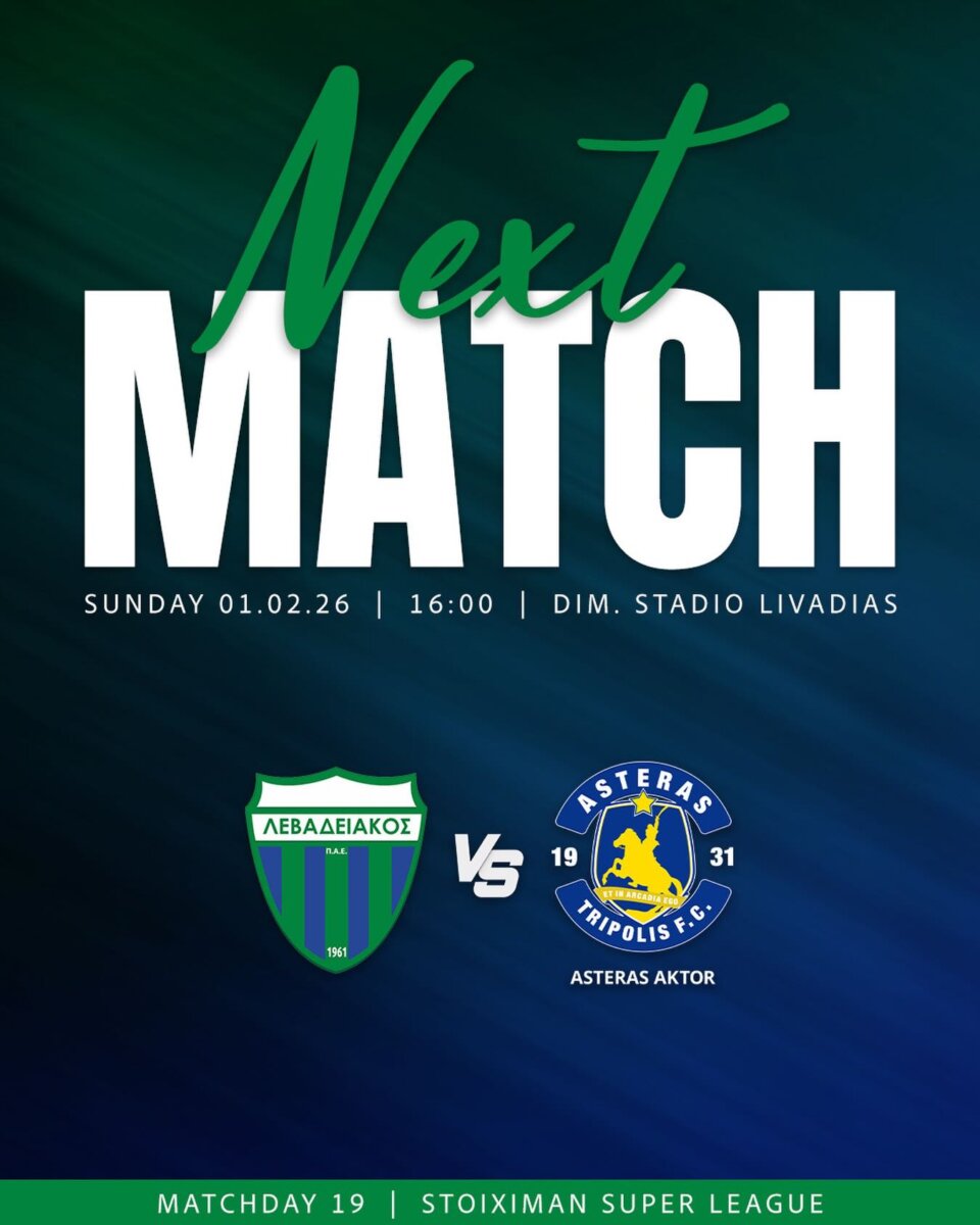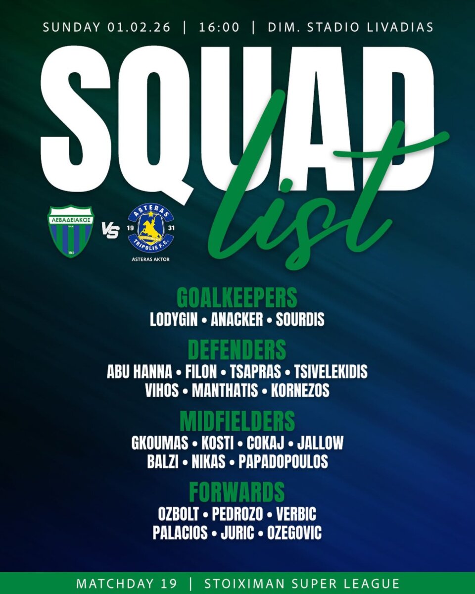 Με αρκετές αλλαγές στην “αποστολή” μιας και έχει απουσίες θα υποδεχθεί η ομάδα της Π.Α.Ε. “Α.Π.Ο. Λεβαδειακός” την ομάδα της Π.Α.Ε. “Asteras Aktor F.C.”, αύριο, Κυριακή, 1η Φεβρουαρίου, στις 16:00′, στο δημοτικό στάδιο της Λιβαδειάς “Λάμπρος Κατσώνης”, στον αγώνα για την 19η αγωνιστική της Α’ φάσης (κανονική περίοδος) του πρωταθλήματος της “Stoiximan Super League” 2025-2026.