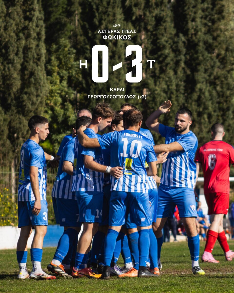 Η ομάδα του Φωκικού πέρασε θριαμβευτικά από το δημοτικό γήπεδο της Ιτέας “Αθανάσιος Νοικοκυράκης” νικώντας τον Αστέρα με 4-0 [Καράι, Γεωργουσόπουλος (3)]!