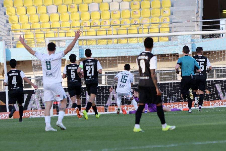 Εκπληκτική κυκλοφορία της μπάλας από τους παίκτες του Λεβαδειακού, ο Μπάλτσι έδωσε στον αμαρκάριστο, Πεντρόσο και εκείνος πλάσαρε ιδανικά τον Λίο στο τετ-α-τετ για το 0-1.