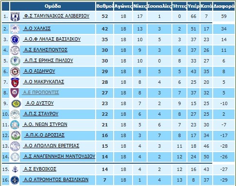 Η Δροσιά γνώρισε συντριβή στο Βούρκο, παρόλα αυτά παρέμεινε στη 12η θέση, καθώς η Ερέτρια ηττήθηκε στο Πήλι, η Αναγέννηση Μαντουδίου στη Μακρυκάπα και ο Ευβοϊκός λύγισε εντός έδρας από τον ΑΟ Χαλκίς.