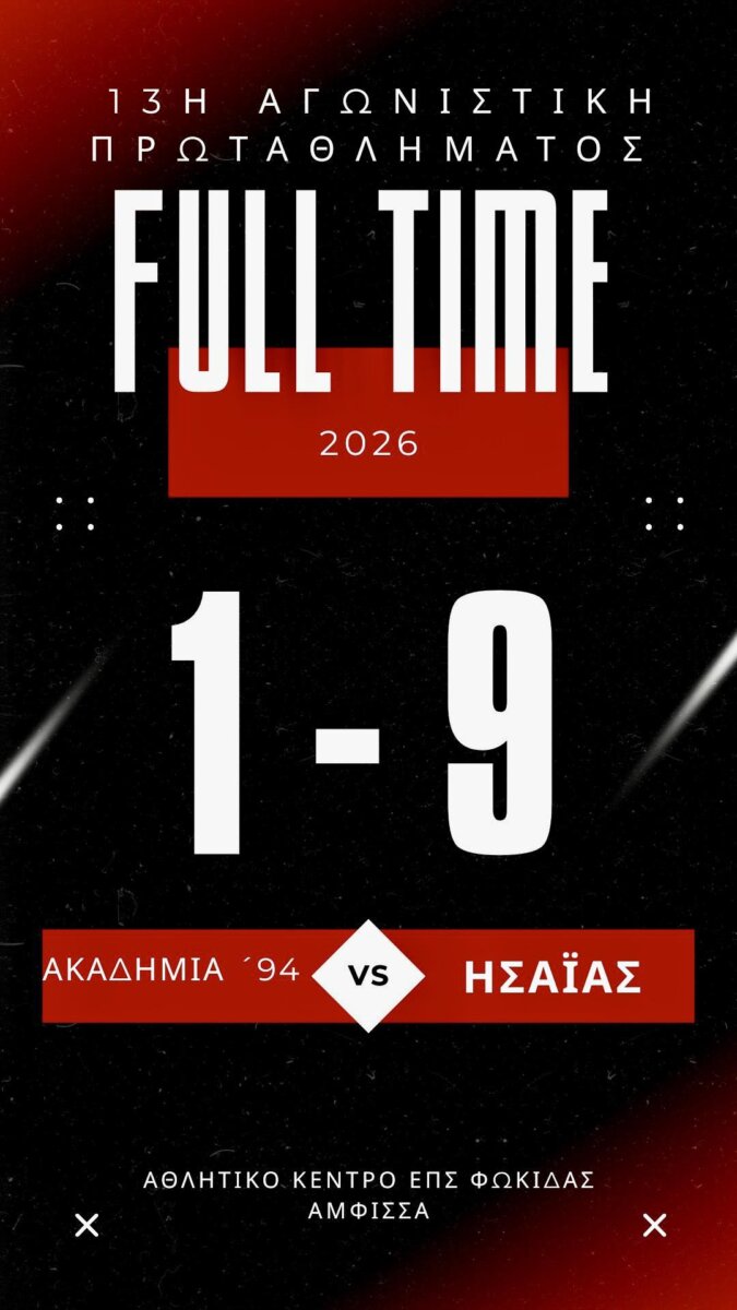 Α.Σ. “ΑΚΑΔΗΜΙΑ ’94” – Α.Σ. “ΗΣΑΪΑΣ” ΔΕΣΦΙΝΑΣ 1-9