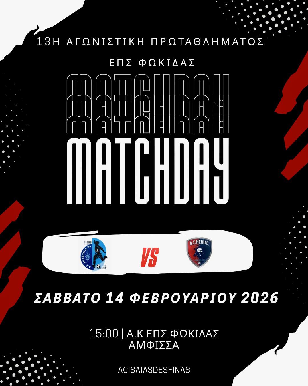Τρεις (3) αγώνες έγιναν σήμερα (Σάββατο, 14/2) για την 13η αγωνιστική (προτελευταία) της Α’ φάσης (κανονική περίοδος) του προγράμματος του πρωταθλήματος της Α’ κατηγορίας που διεξάγει η ενωση ποδοσφαιρικών σωματείων Φωκίδας και στη σεζόν 2025-2026.
