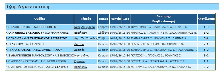 Ο Δύστος επέστερψε στις νίκες επικρατώντας της Αιδηψού, δεύτερη συνεχόμενη νίκη για τον Λήλα με ενυπωσιακή μάλιστα ανατροπή, ενώ η Προποντίδα έφυγε με διπλό από τη Ν. Λάμψακο και συνεχίζει την ασύλληπτη πορεία 8 συνεχόμενων νικών πιάνοντας τετράδα από την τελευταία θέση που βρισκόταν πριν από 2,5 μήνες.
