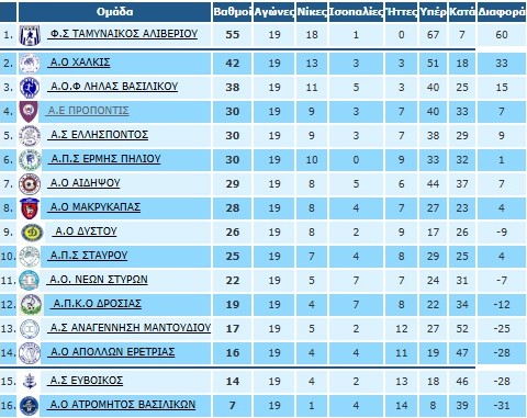 Ο Ευβοϊκός που ηττήθηκε στο Μαντούδι και η Ερέτρια που αναδείχθηκε ισόπαλη με τον ΑΟ Ν. Στύρων βρίσκονται αυτή την ώρα σε θέση υποβιβασμού.