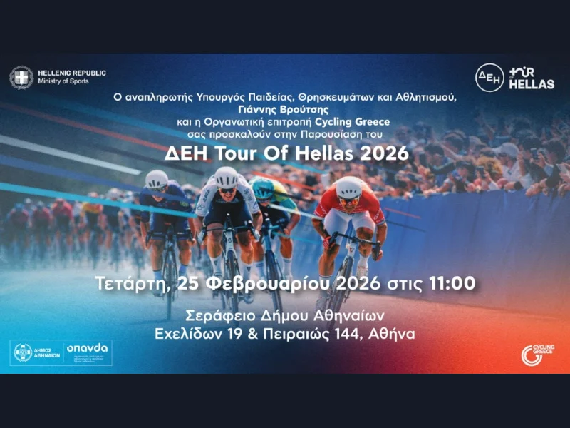 “Την Τετάρτη 25 Φεβρουαρίου 2026, στις 11:00, στο Σεράφειο, παρουσιάζουμε την 5η έκδοση της σπουδαίας ετήσιας αθλητικής διοργάνωσης της χώρας μας, τον ΔΕΗ Tour of Hellas (6-10 Μαΐου).