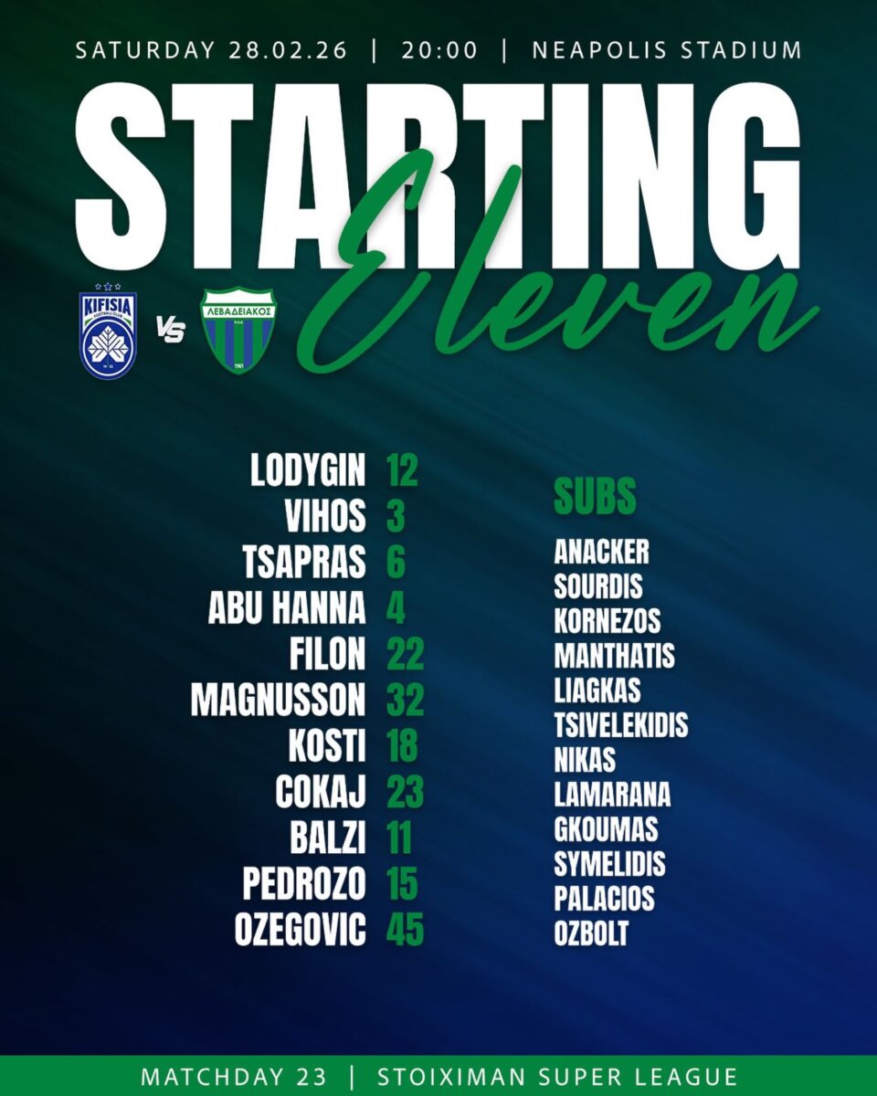 Για τον Λεβαδειακό ο Νίκος Παπαδόπουλος υποχρεώθηκε σε μια αλλαγή της τελευταίας στιγμής καθώς ο Όζμπολτ, ο οποίος είχε δηλωθεί στην αρχική ενδεκάδα, ένιωσε ενοχλήσεις στην προθέρμανση και έτσι την θέση του πήρε ο Οζέγκοβιτς.