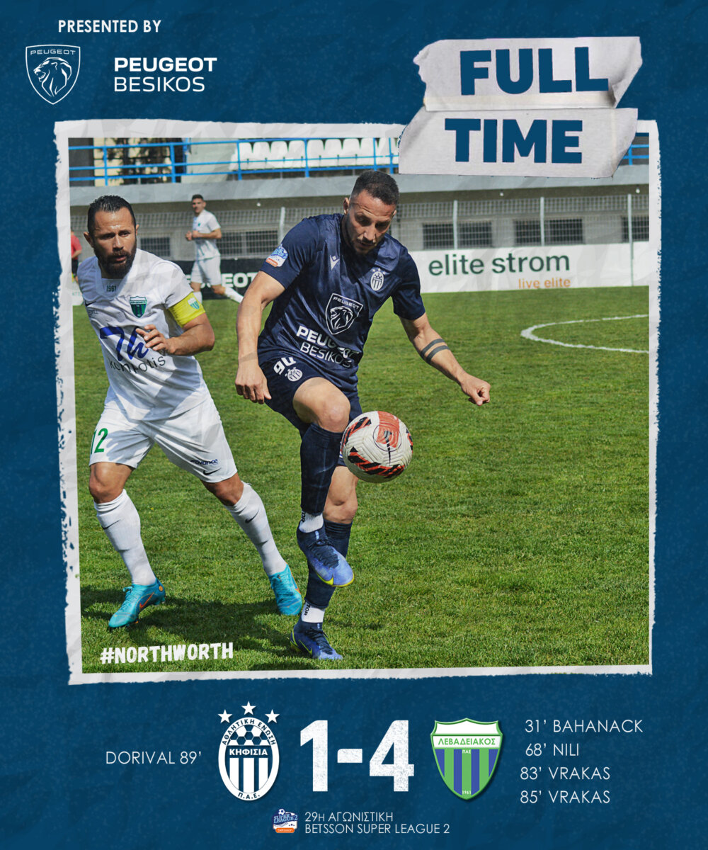Η μοναδική τους αναμέτρηση με γηπεδούχο την Κηφισιά είχε γίνει στις 6 Απριλίου 2022 για το πρωτάθλημα της δεύτερης κατηγορίας (“Super League 2”) στο “Μιχάλης Κρητικόπουλος” και ο Λεβαδειακός είχε επικρατήσει με 4-1 (φωτο κάτω).