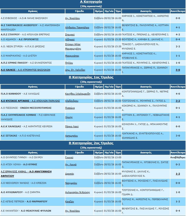 Ο ΑΟ Χαλκίς συνέτριψε τον “καταδικασμένο” Ατρόμητο Βασιλικών με 5-0, με τους Δούκα, Σταματάκο, Σπύρου, Μακρή και Γιαλό να σκοράρουν. Η Προποντίδα συνεχίζει με τα φρένα σπασμένα περνώντας εμφατικά και από την Αιδηψό. Οι παίκτες του Αντώνη Αυλωνίτη σημείωσαν τέσσερα τέρματα με Μήτρου, Κολώνια, Χατζηστάμου και Κανάνι να υπογράφουν την ένατη σερί νίκη.