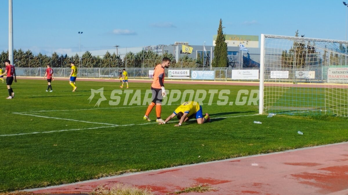74’ στο προσκήνιο οι γηπεδούχοι, ο Σιδέρης από αριστερά έκανε την σέντρα, μόνος μέσα στην περιοχή ο Κατσής “φάτσα” με το γκολ, έκανε κακό πλασέ.