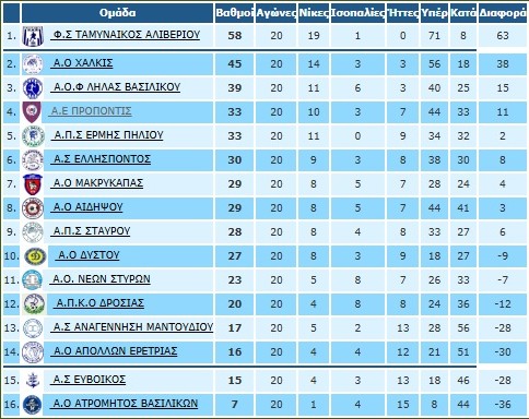 Την ξέφρενη κούρσα προς την κατάκτηση του τίτλου συνεχιζει ο Ταμυναϊκός που πέτυχε άλλη μια ευρεία νίκη. Σε ότι αφορά στην ουρά ανάσα για τη Δροσιά ο βαθμός που πήρε στη νότια Εύβοια και απομακρύνθηκε τέσσερις βαθμούς από την 14η θέση.